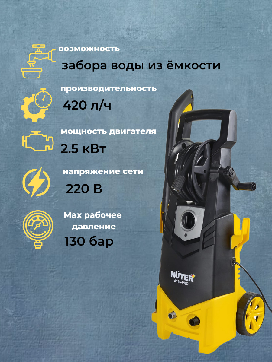 Мойка высокого давления Huter предназначена для мойки велосипедов, транспортных средств, авто и мототехники, фасадов зданий, дорожек, садовых принадлежностей и т.д. Мойки Huter обладают большим ресурсом благодаря надёжному электродвигателю и алюминиевой п