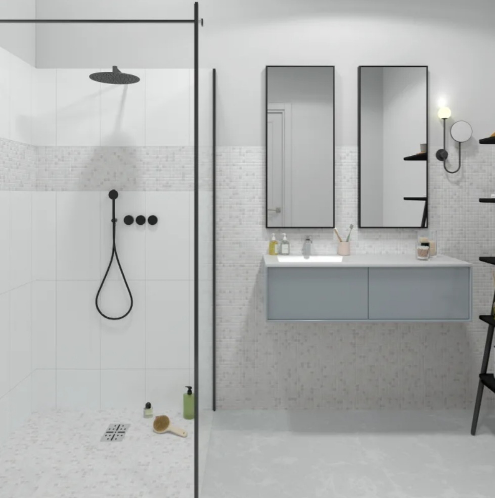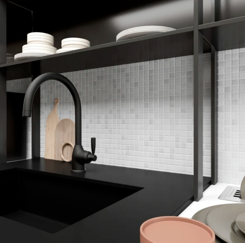 Мраморная мозаика — готовый к укладке модуль размером 30×30 см. На гибком основании при помощи клеевого состава закреплены мелкие элементы (форма элементов — квадрат). Такое решение ускоряет и упрощает процесс укладки.Мозаика изготовлена из экологически б