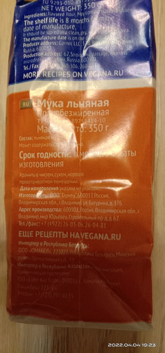Льняную муку рекомендуется применять при выпечке изделий из дрожжевого и пресного теста, заменяя пшеничную муку льняной на 10-20 % (оладьи, блины, булочки, кондитерские изделия и т.д.). Выпечка с добавлением льняной муки приобретает приятный коричневатый