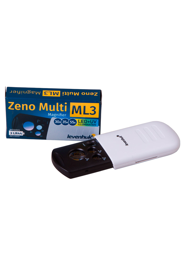 Levenhuk Zeno Multi ML3 – лупа с тремя встроенными линзами и двумя подсветками (светодиодной и ультрафиолетовой). Благодаря выдвижному корпусу лупа компактна – она легко помещается в карман или сумку. Линзы дают разное увеличение, поэтому Levenhuk Zeno Mu