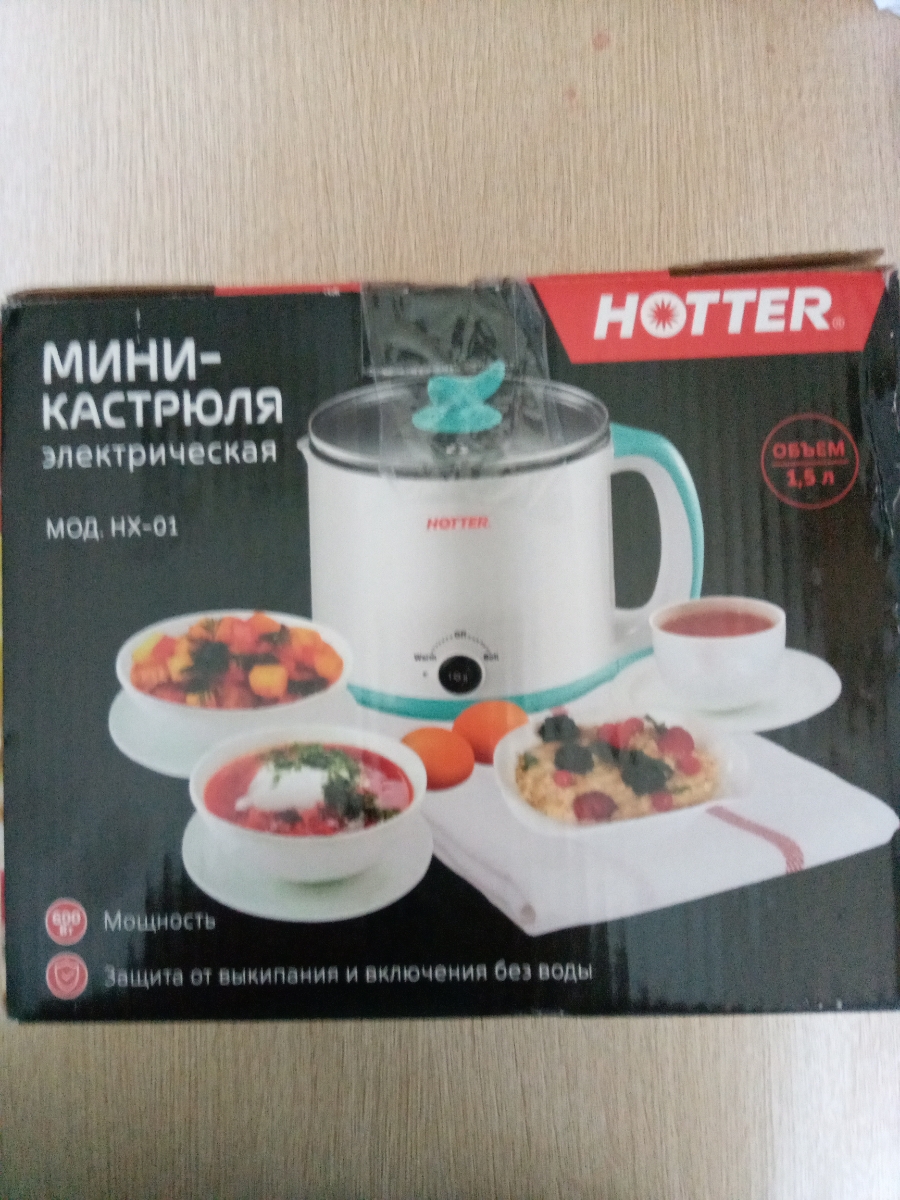 Системы защиты:Автоматическое отключение при отсутствии воды Блокировка включения без водыОписание:МИНИВАРКА HOTTER – полноценный кухонный прибор, который справится с большинством блюд, доступных для приготовления на плите, а также разогреет еду, детское