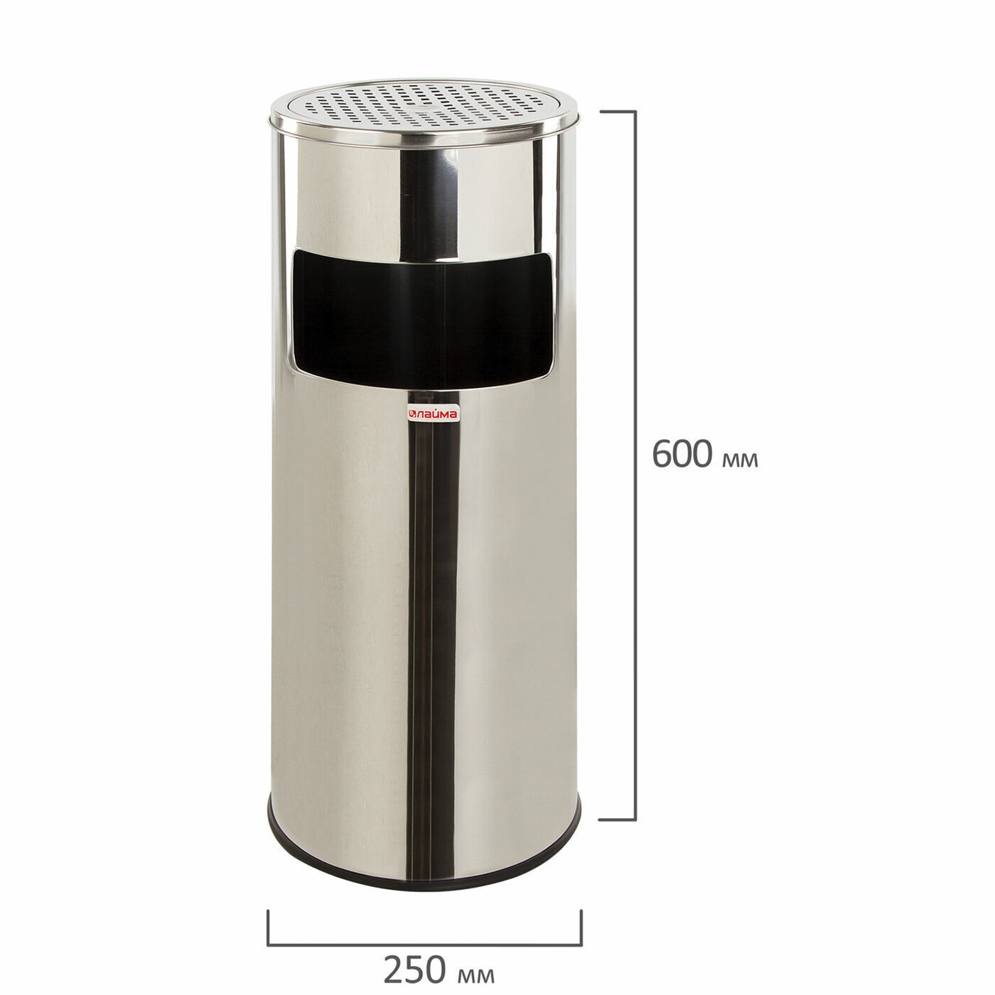 Урна с пепельницей ЛАЙМА "Профессионал" предназначена для утилизации отходов, помогает поддержать порядок и чистоту как внутри помещения, так и на входе в здание.Урна выполнена из зеркальной нержавеющей стали и имеет объем 27 л. Снабжена пепельницей с кры