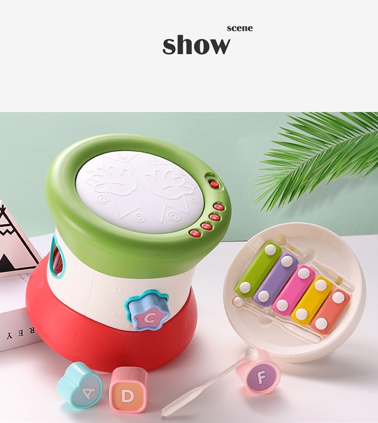 Музыкальный детский интерактивный барабан,состоит из множества подвижных частей.Барабан имеет музыкальное сопровождение.Детский барабан имеет специальные отверстия для фигурок.Развивающая игрушка предназначенная для детей с 0+ месяцев.