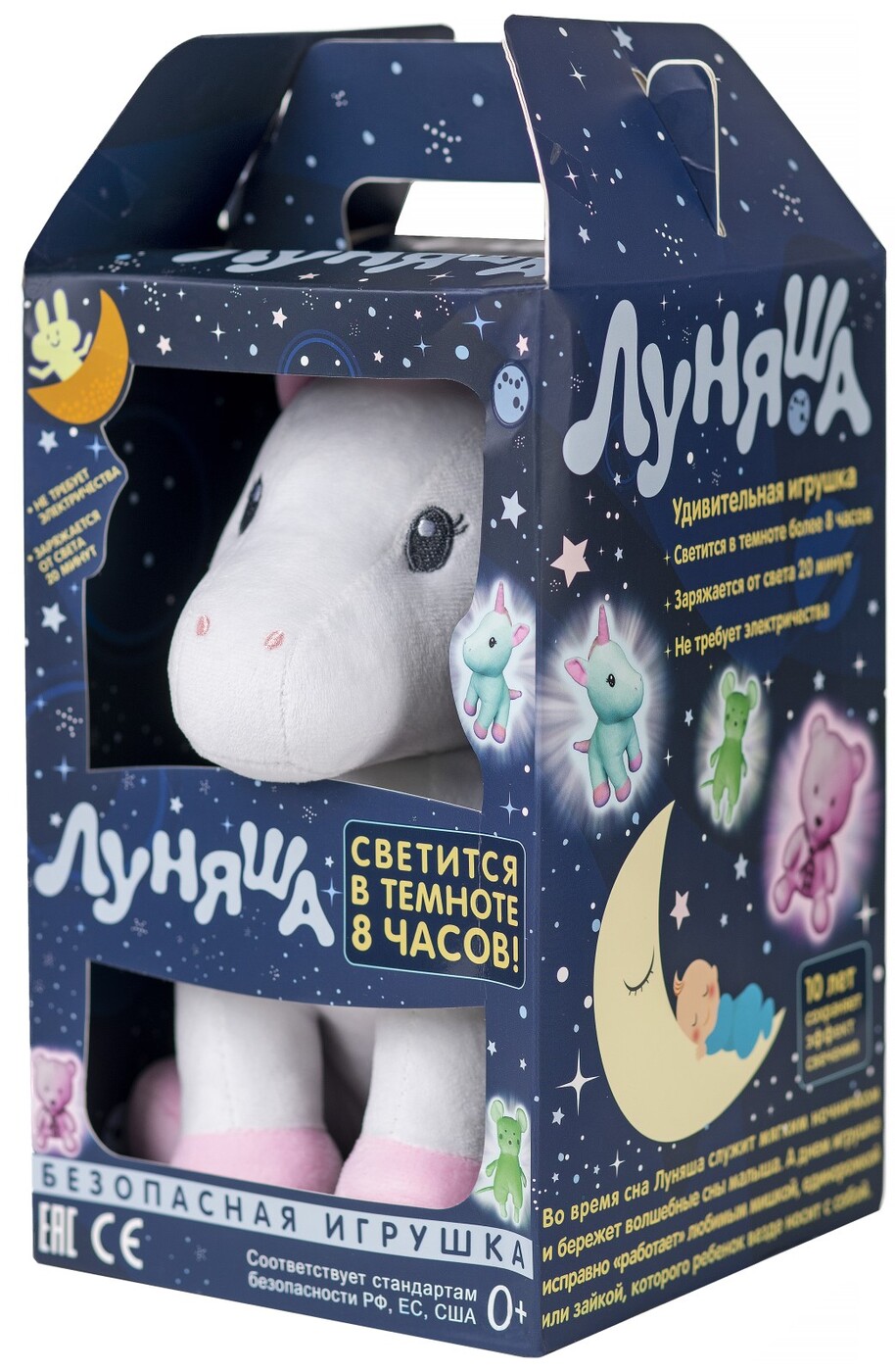 Комплектация:Мягкая игрушкаОписание:Веселый и очаровательный Единорог входит в серию мягких светящихся игрушек «Луняша». Сочетание белоснежного и розового цвета с разноцветными вставками способствует развитию правильного цветовосприятия у детей, бережно в