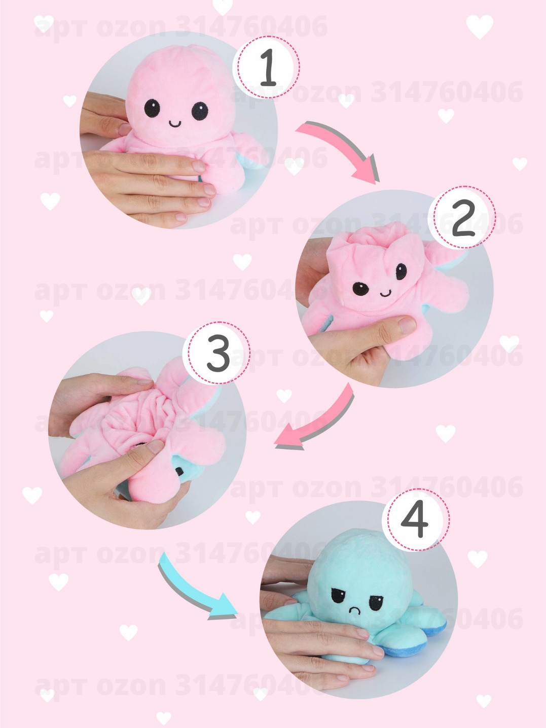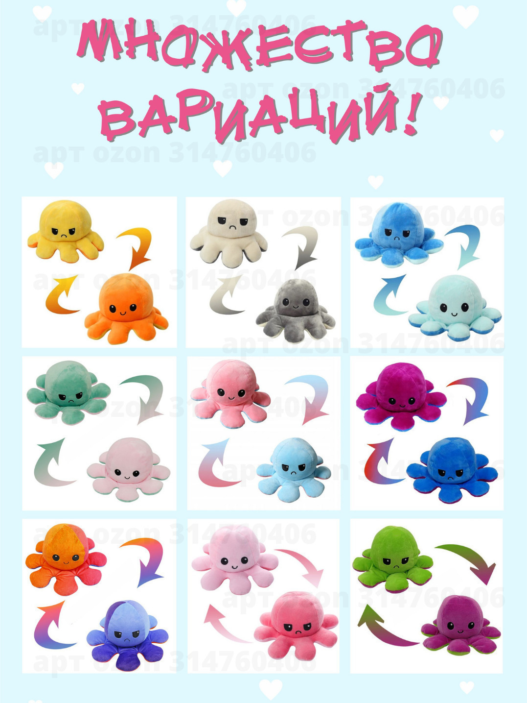 Осьминог перевертыш - осьминог настроения! Самый трендовый подарок любимым и близким, взрослым и детям. Эта игрушка идеально подходит для снятия стресса и позволяет показать вам свое настроение ни говоря ни слово! Купите этого плюшего осьминого, что бы по