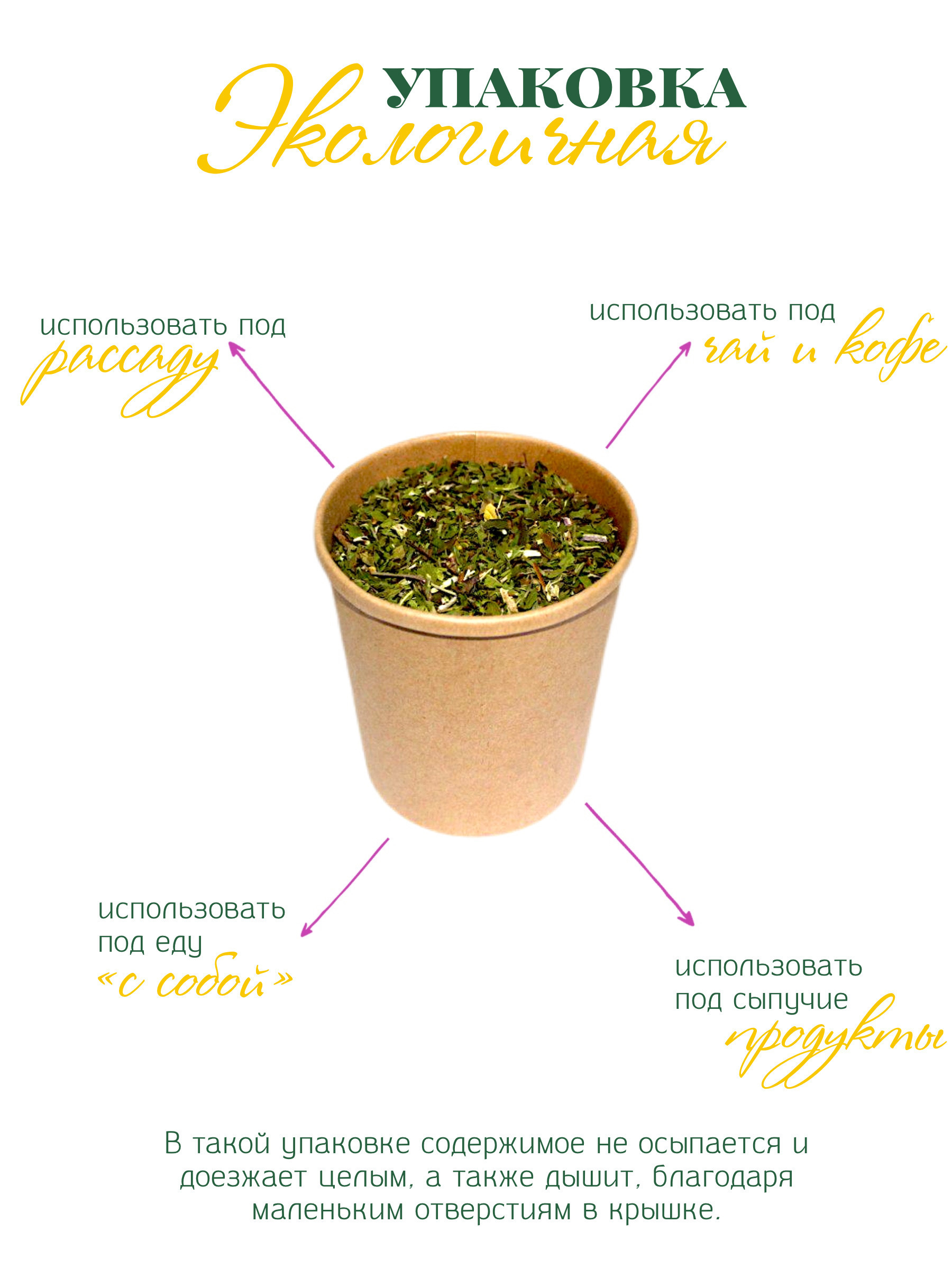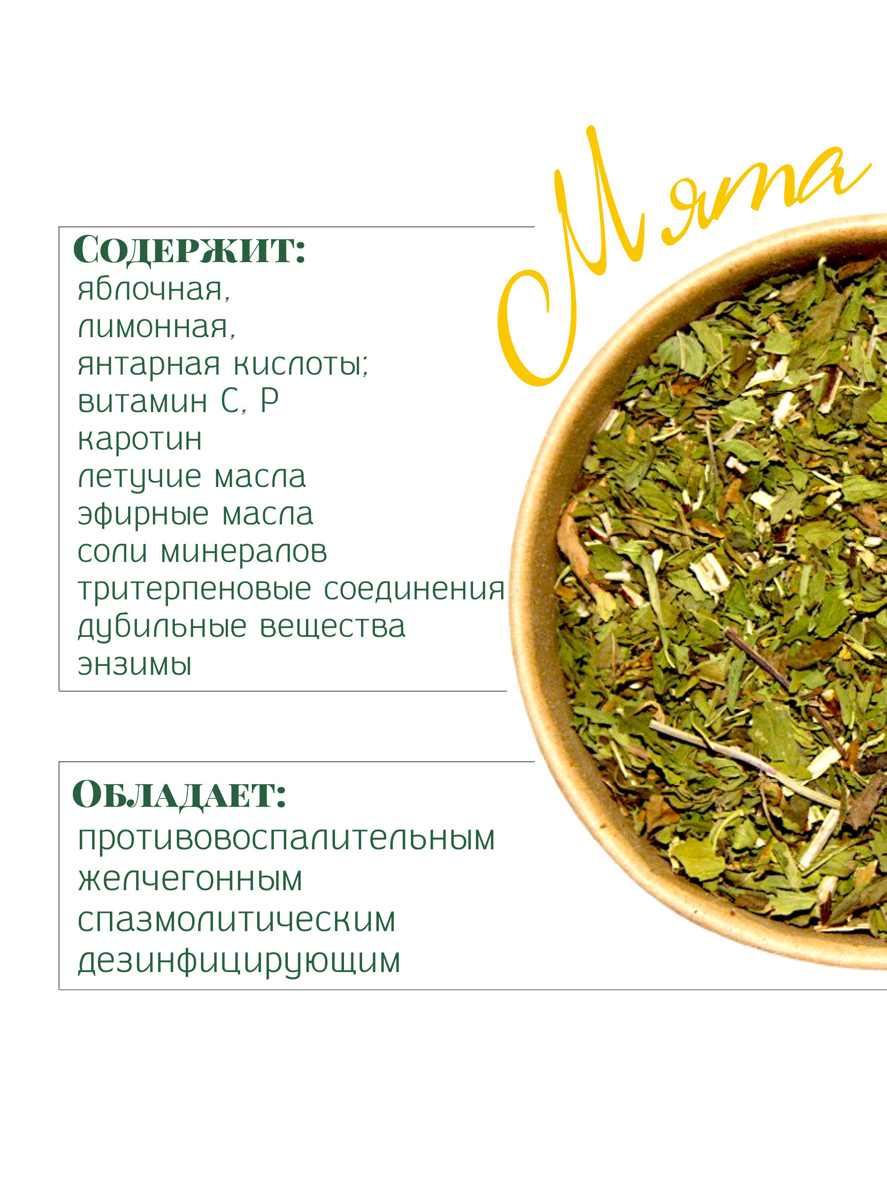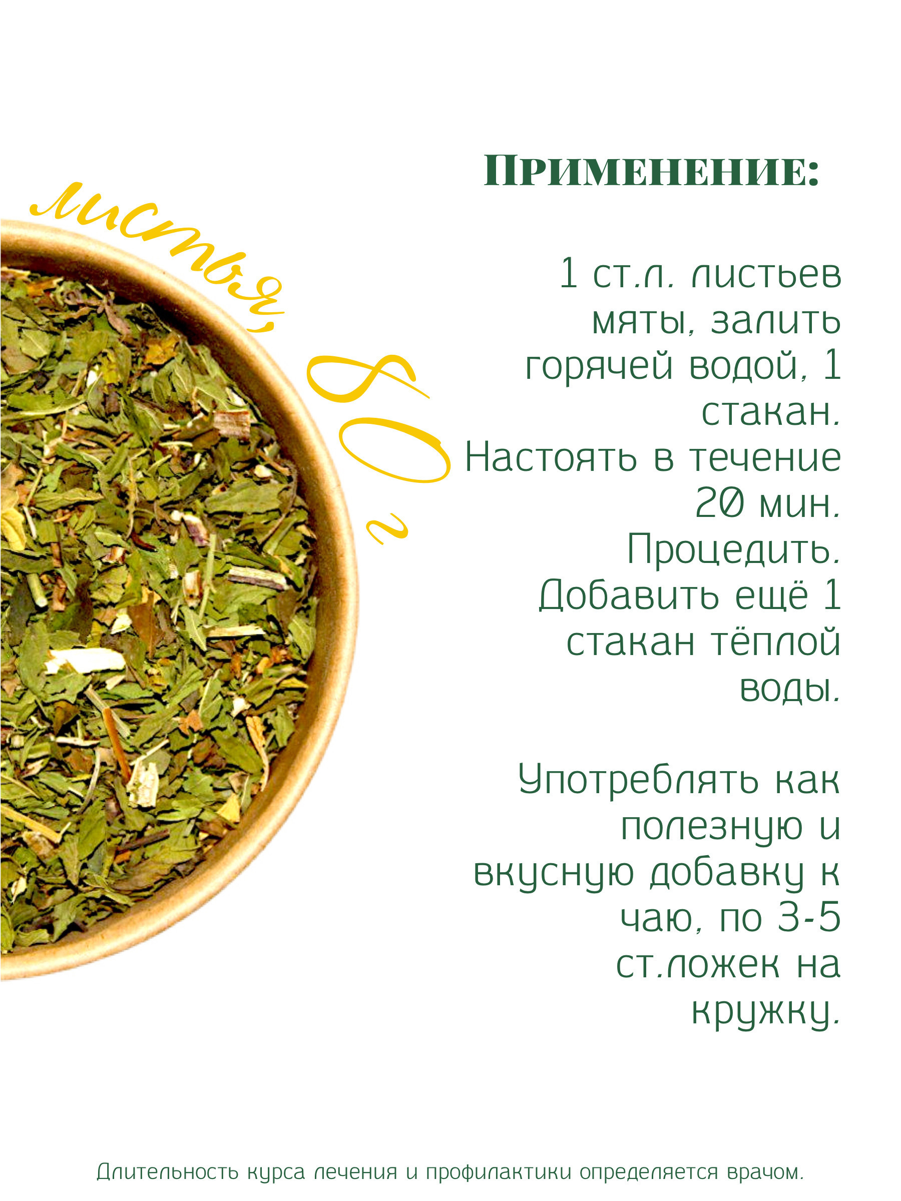 Условия хранения:В сухом, темном месте, при комнатной температуреСостав:листья мяты 100%Описание:Мята, 80г.Практичная и экологичная упаковка. Содержимое не осыпается и дышит. Упаковка может использоваться в хозяйстве повторно- это эко-стакан с удобной кры