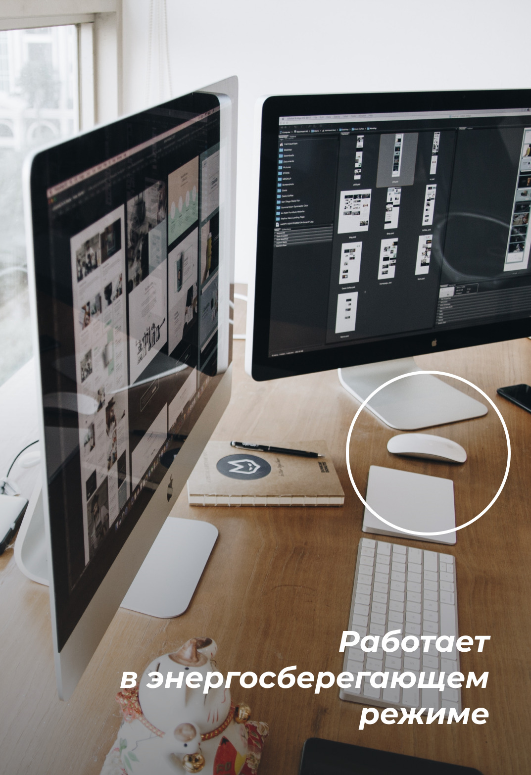 Периферийное устройство для компьютера, занимающее мало места на столе и работающее на всех поверхностях (стекло, пластик, дерево), облегчает рабочий и игровой процессы. Теперь работникам офисов, использующих во время презентаций оптическую беспроводную м