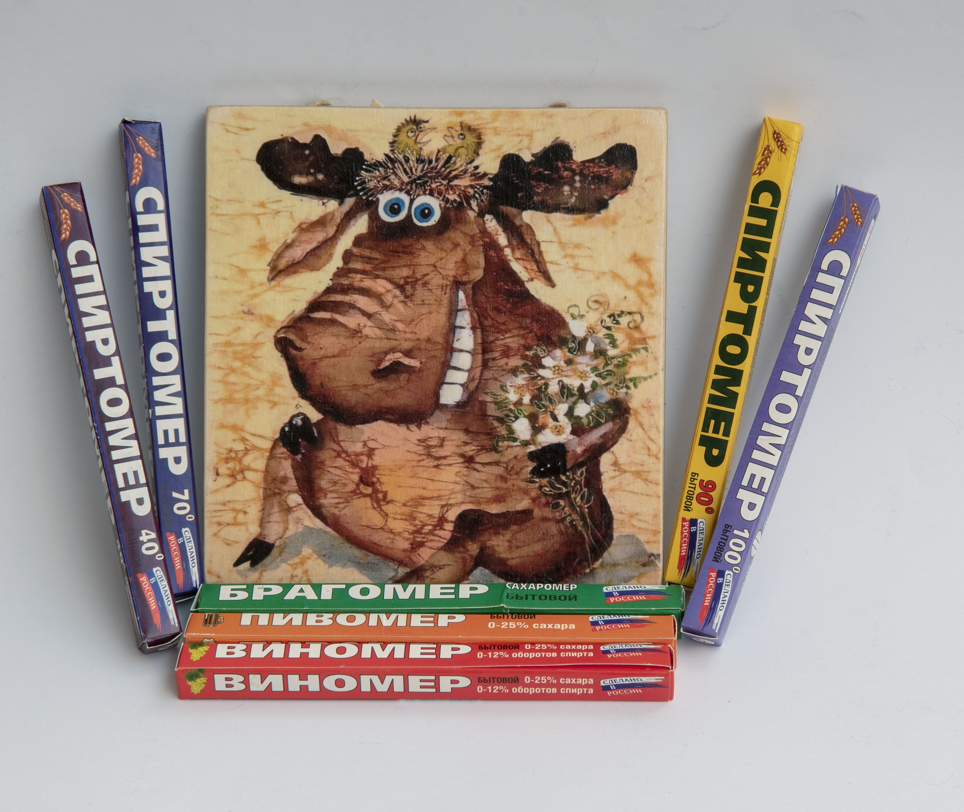 Комплектация:Спиртомер 70%-100% ( 1 )Спиртомер 0-90% ( 1 )Спиртомер 40%-70% ( 1 )Спиртомер 0-40% ( 1 )Виномер ( 1 )Брагомер ( 1 )Пивомер ( 1 )Описание:Ареометр — прибор для измерения плотности жидкостей и твёрдых тел, принцип работы которого основан на За