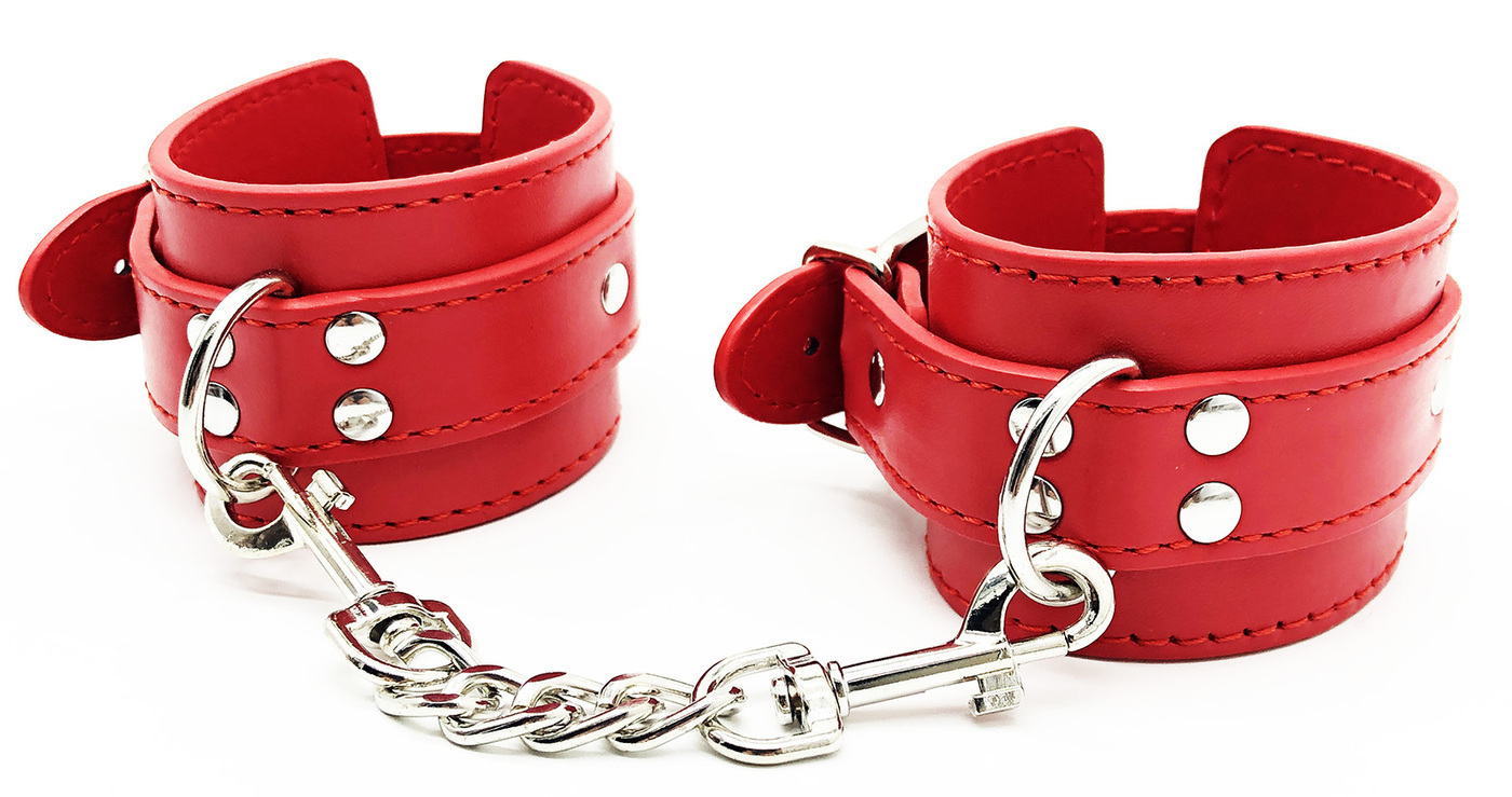 Состав комплекта:1. Наручники на металлических цепочках с карабинами, 20х5,5 см2. Ошейник 51 см,3. Зажимы для сосков с красными бубенчиками 4. Кляп-шарик 63 см, диаметр шарика 4,5 см 5. Закрытая маска для глаз6. Веревка (5 м) 7. Флоггер-лопатка 17,5 см 8.
