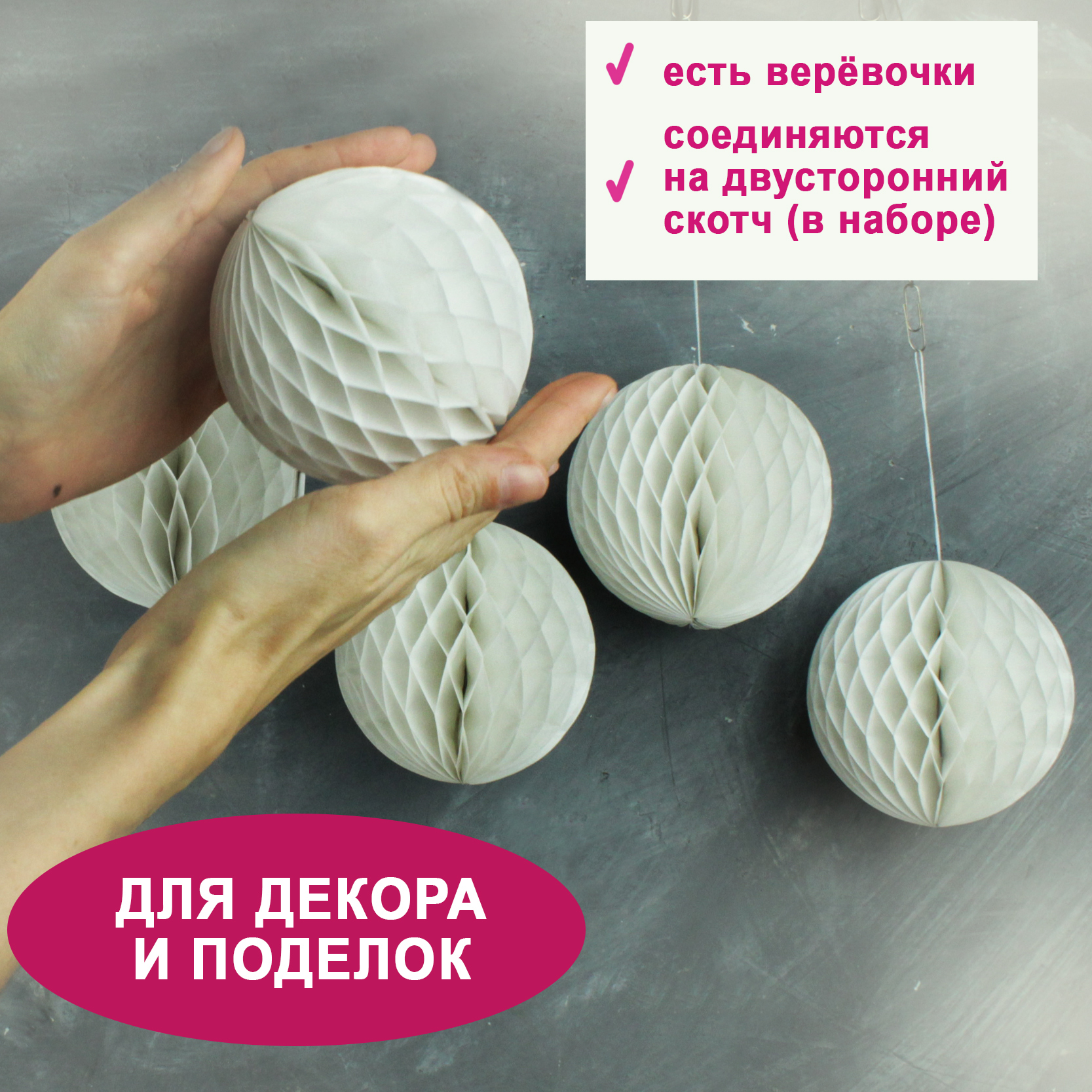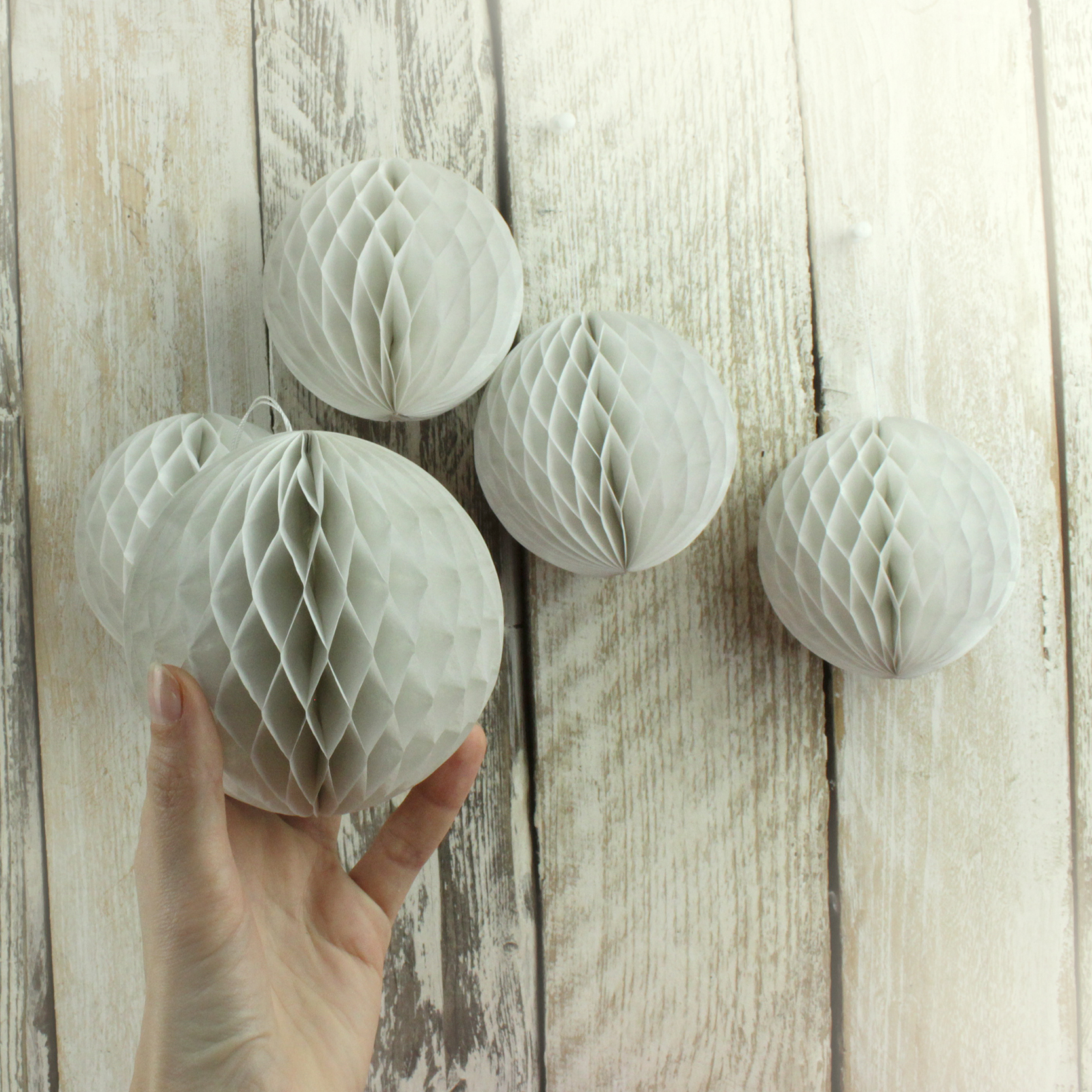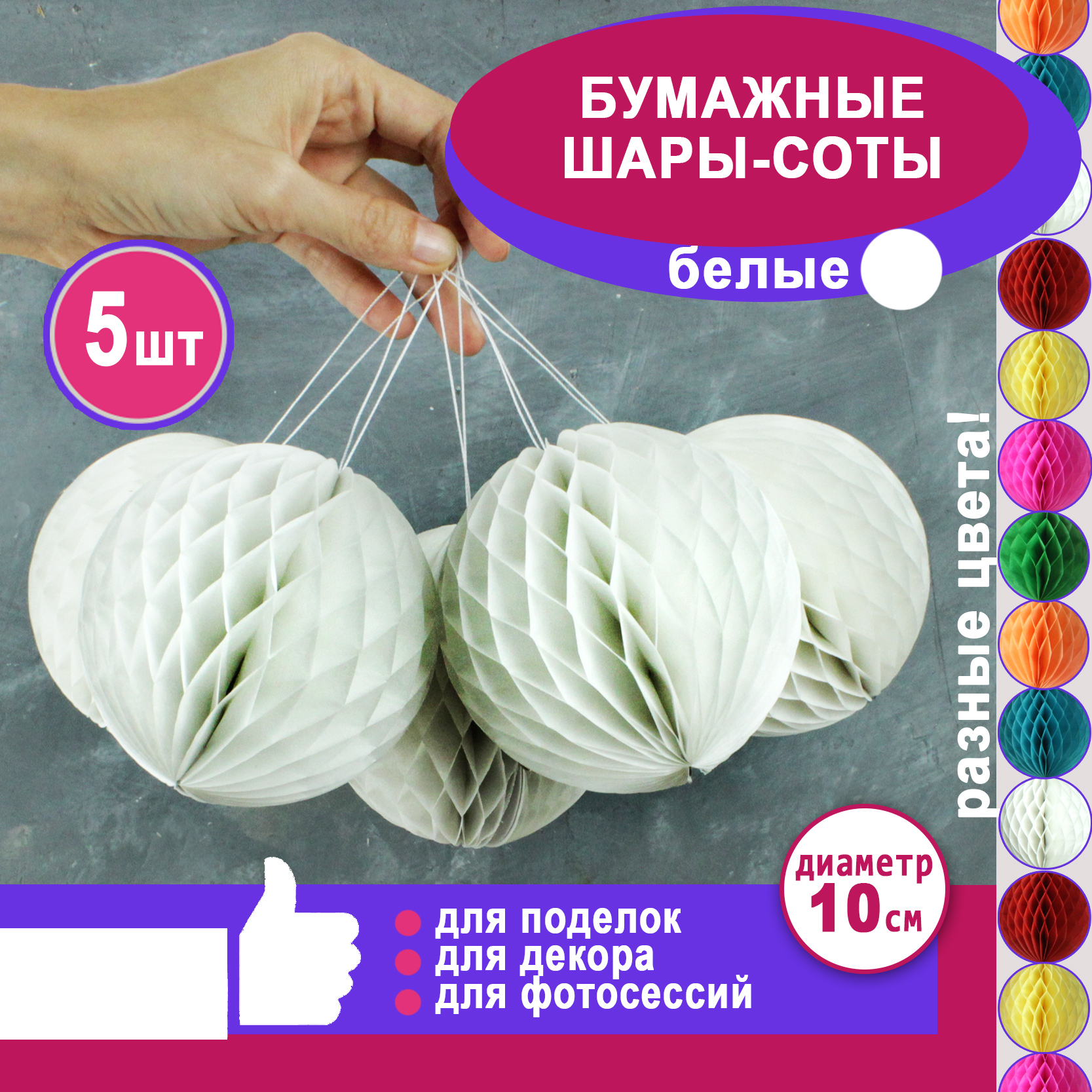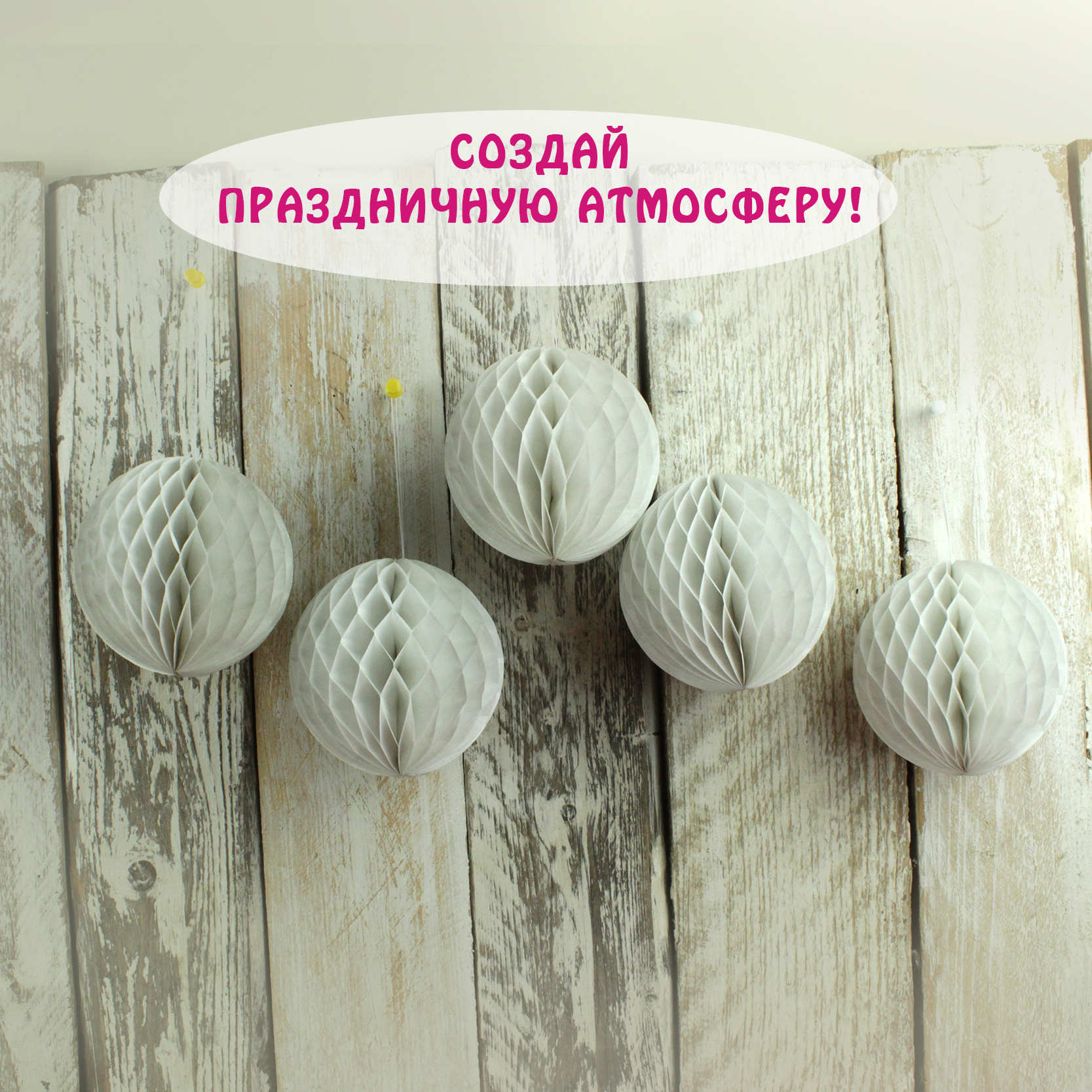 Набор бумажных шариков - это красивая заготовка для Ваших поделок.В набор входят 5 шариков-сот белого цвета.Шары для поделок можно крепить на стену и потолок. Они помогут сделать вашу поделку очень красивой. А также шары станут невероятно красочным украше