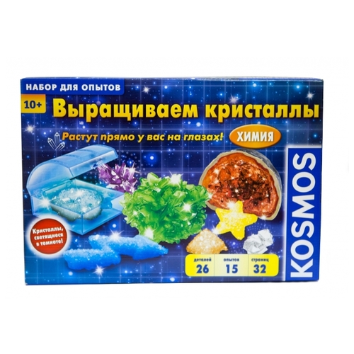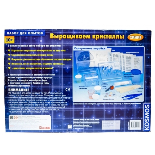 Комплектацияшкатулка для сокровищ, гипс, кристаллические соли, кристаллические соли, светящиеся в темноте, формы для отливки, краски в таблетках, пинцет, пипетка, шпатели, мерные стаканчики, инструкция на русском языке (32 страницы)