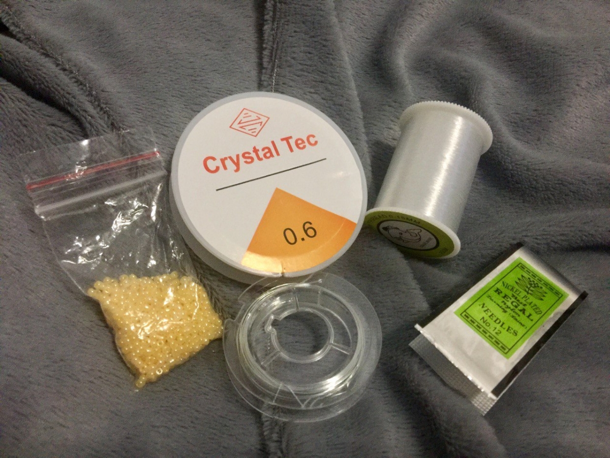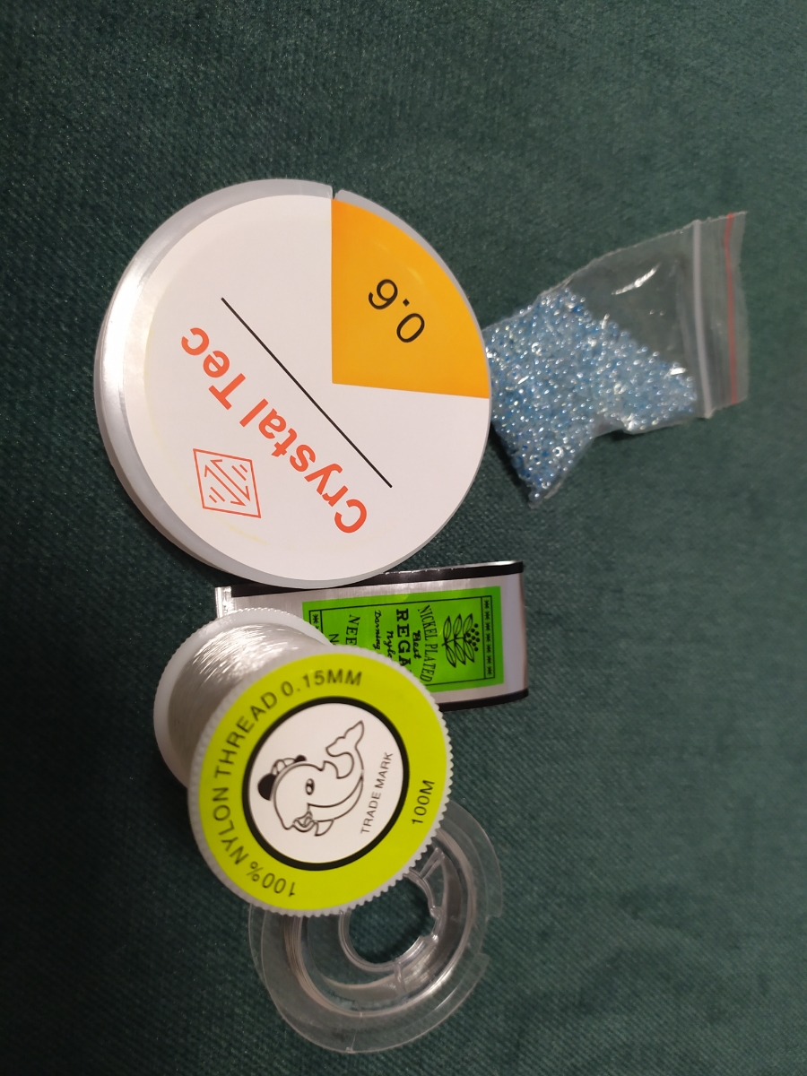 Набор для бисероплетения включает в себя: нить силиконовую (0,6 мм) длинной 12 метров, мононить (леску 0,15 мм) длинной 100 метров, проволоку (0,3 мм) длинной 10 метров, иглы бисерные (12 шт.).Силиконовая нить – силиконовая резинка, отлично растягивается.