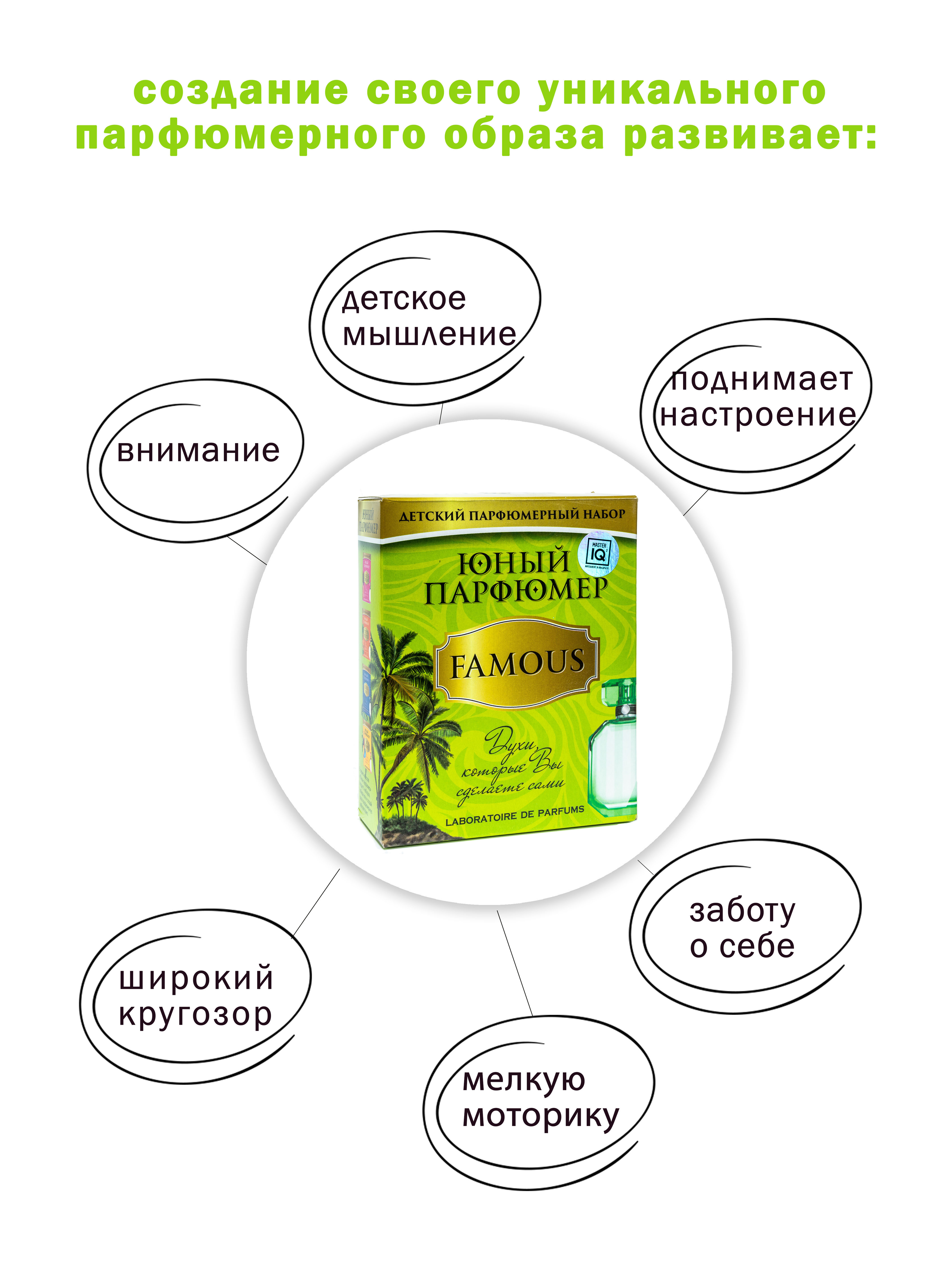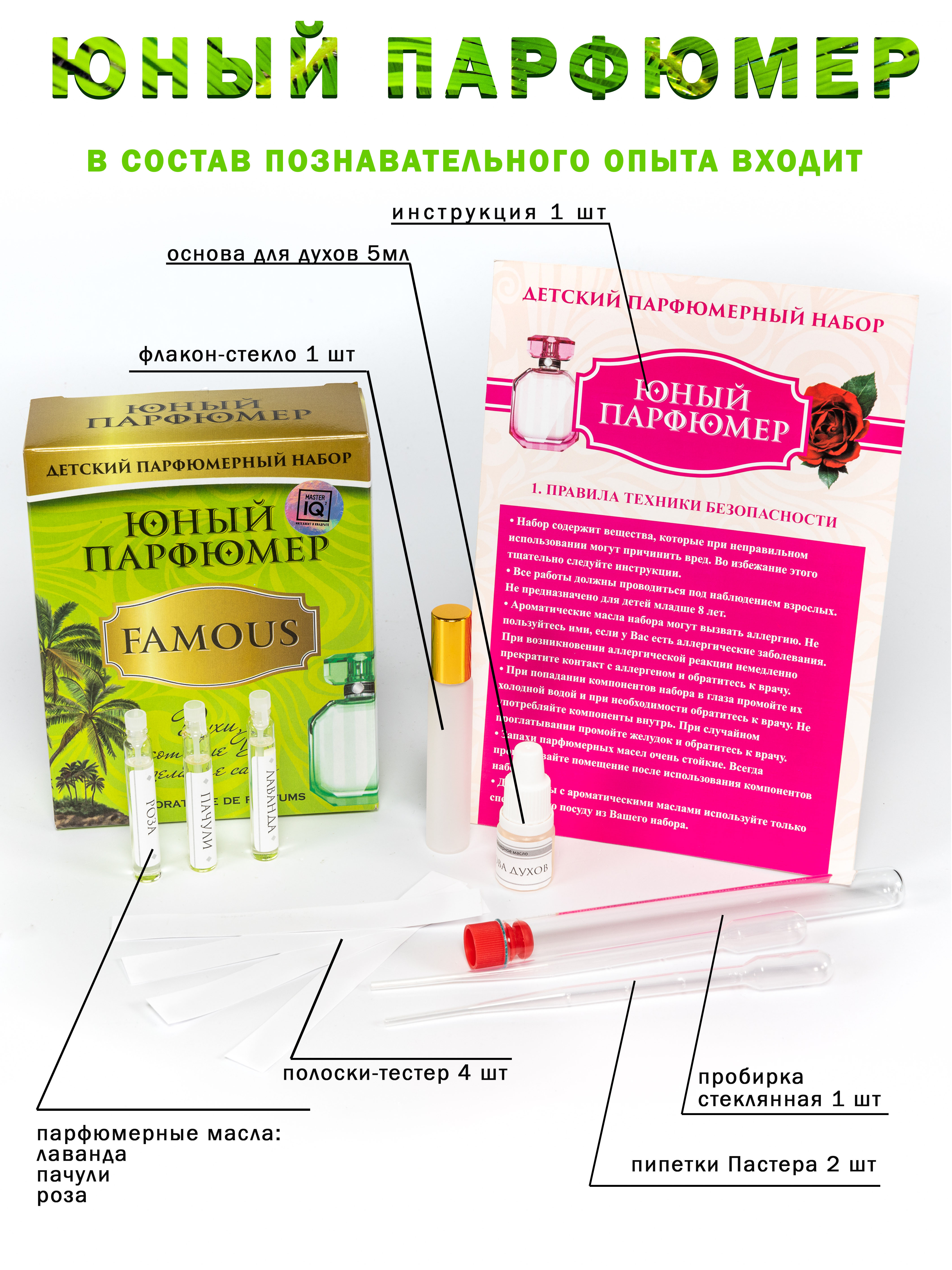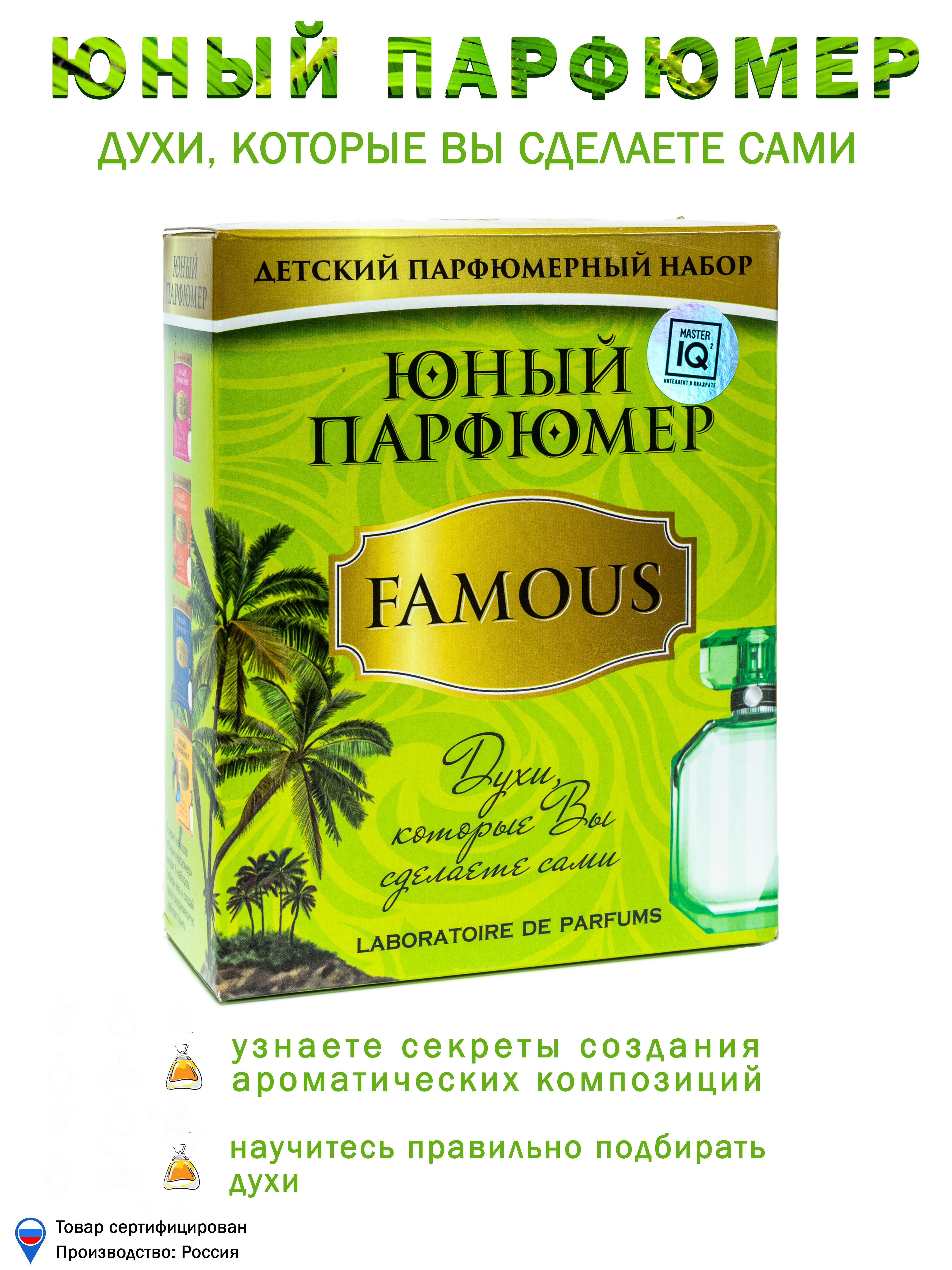 Набор для создания духов "Юный парфюмер. Famous" позволит самостоятельно создать свои собственные духи для неповторимого образа.Набор представляет собой настоящую лабораторию, в которой можно изучить историю парфюмерии, узнать базовые принципы создания ду