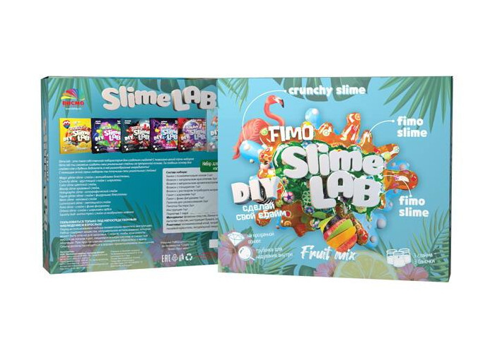 Slime LAB Fimo Fruit mix — это набор для опытов и экспериментов из серии Юный химик. У вас и ваших детей есть отличная возможность создать свой слайм (лизун). И не один, а три!В зависимости от набора варьируются разновидности слаймов, которые вы сможете с