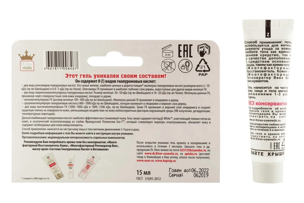 Устраняет пигментные пятна под глазами, осветляет кожу вокруг глаз и увлажняет ее, дает эффект "сияющих "глаз.Способ применения - нанести несколько капель сыворотки на чистую очищенную кожу вокруг глаз, затем нанести крем МРВ.1. Гель содержит 8 (!) вида г