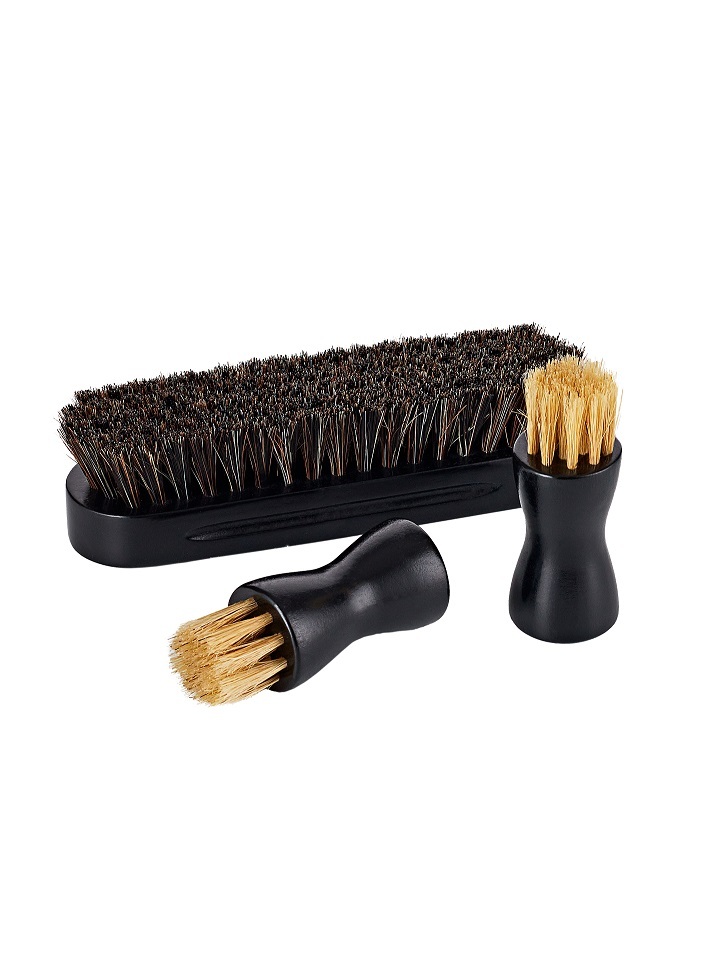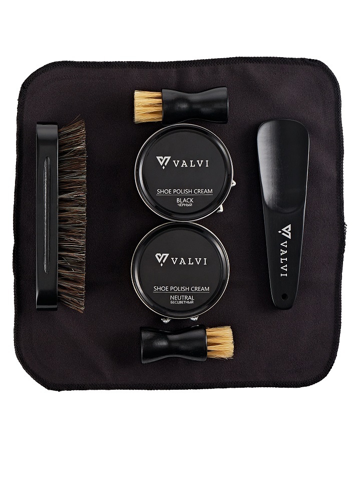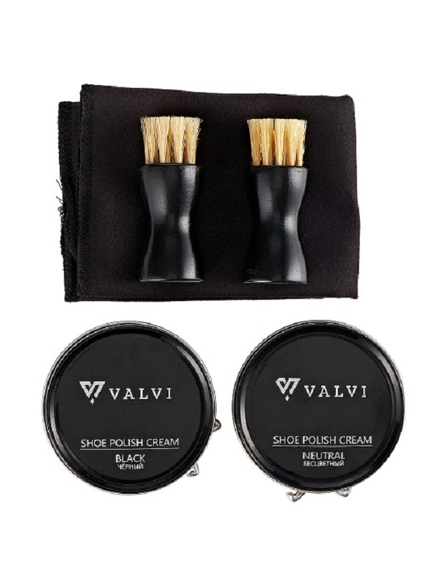 Комплектация:Крем черный ж/банка 50мл. - 1шт,крем бесцветный ж/банка 50мл.- 1шт,щетка для полировки с деревянной ручкой - 1шт, салфетка для чистки и полировки- 1шт, рожок - 1шт, щетка-намазок с деревянной ручкой - 2шт.Описание:Комплект: Крем для обуви из