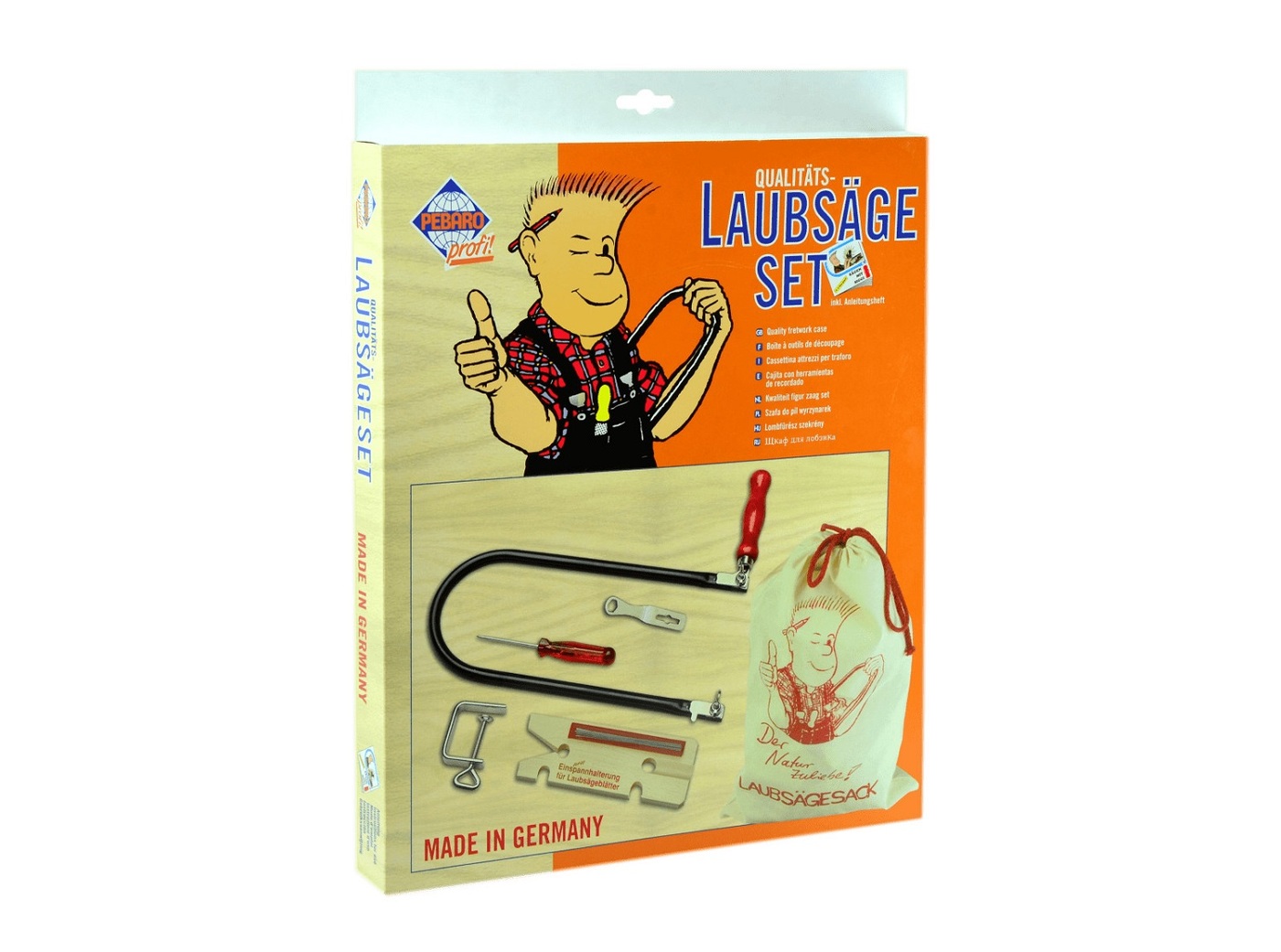 Набор для выпиливания ручным лобзиком и ручной дрелью Pebaro - это сюжетно-ролевая игра для ребенка, выполнена в виде столярного набора. Она способствует развитию мелкой моторики рук, логического мышления, внимания, воображения, творческого и конструкто