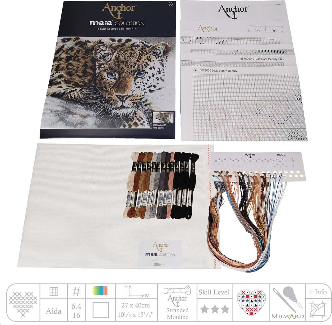 Комплектация:канва Aida 16, хлопковые мулине Anchor с органайзером, игла, цветная символьная схема, инструкцияОписание:Набор для вышивания крестом MAIA "Редкая красота" - отличная идея для творческой самореализации. Серия характеризуется насыщенной цветов