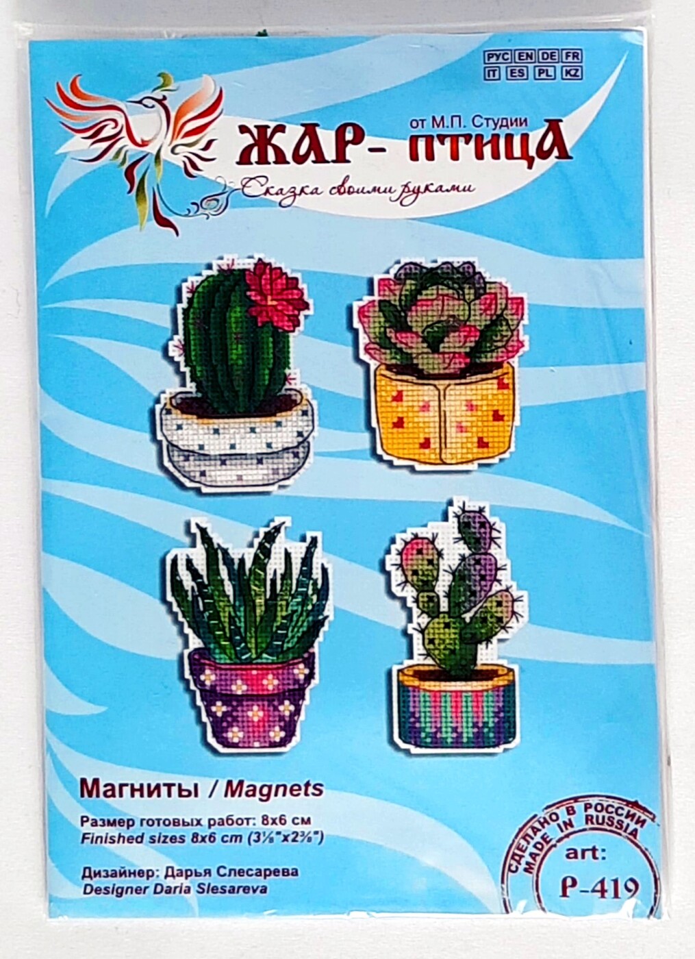 Состав набора:пластиковая канва для четырех сюжетов,нитки мулине, разобранные на органайзере — 23 цвета,фетр белого цвета для оформления задника,магнитное полотно 4х4 см, которое нужно разрезать на 4 равные части,схема,подробное руководство по выполнению