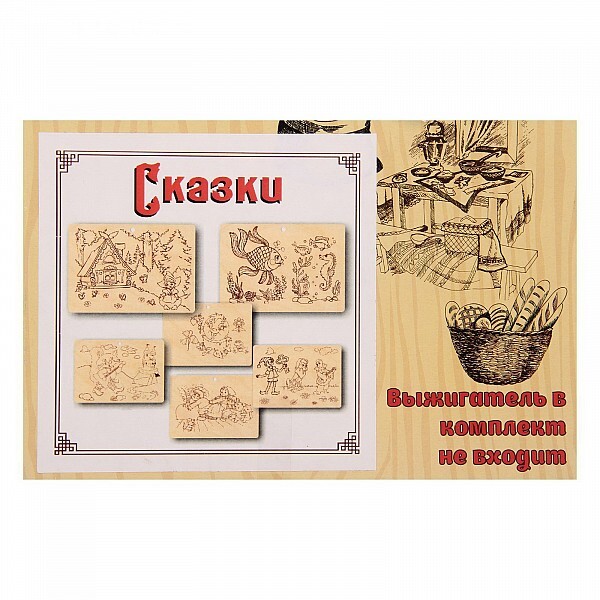 Набор для выжигания "Сказки" позволит детям заниматься любимым делом. Выжигать на дощечке совсем несложно, особенно если на ней уже есть контур. В данный комплект входит две деревянные дощечки, картинки со сказочными персонажами, а также переводка, котора