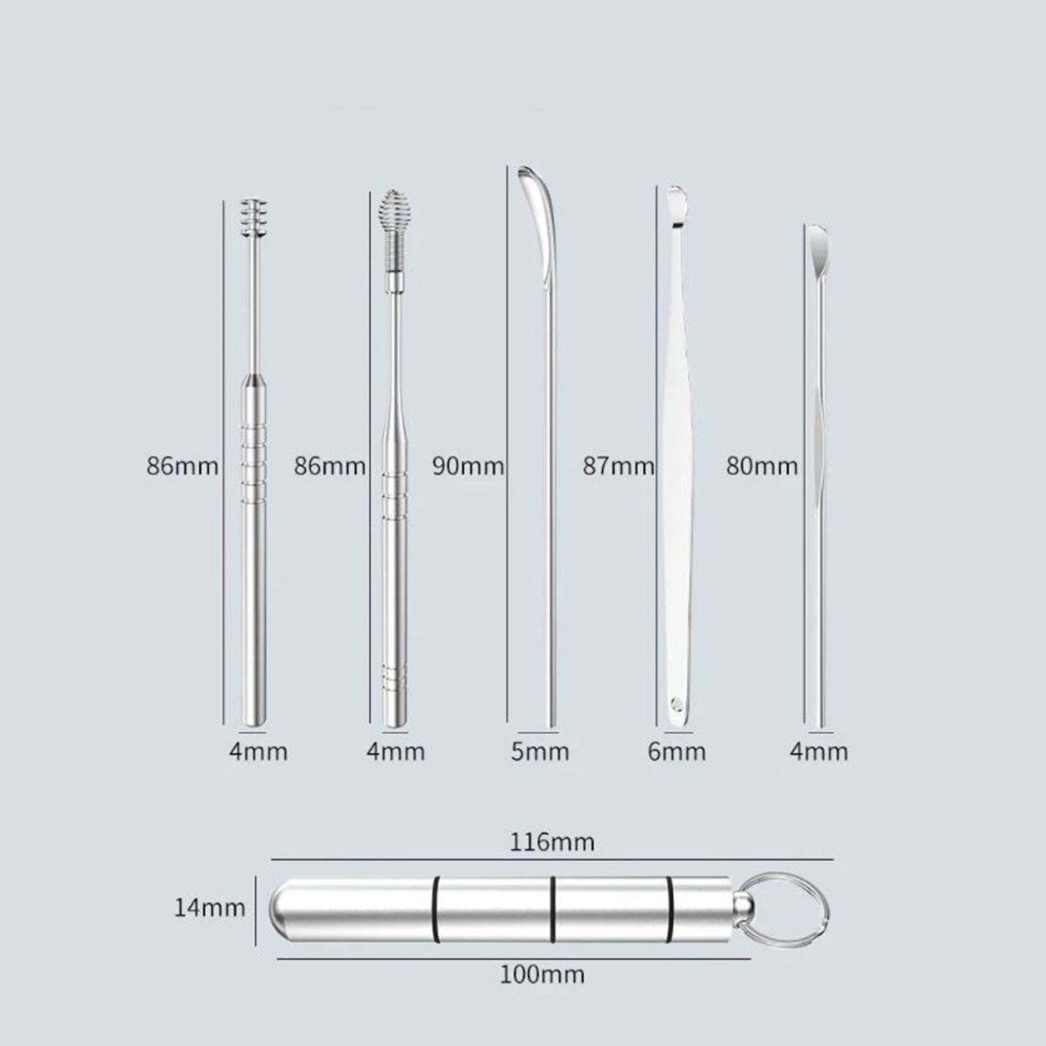 Комплектация:В набор входит 6 инструментов для чистки ушей и металлический футляр для хранения.Описание:Ухочистка – тонкий инструмент, предназначенный для чистки уха внутри. Используется не только для доставания ушной серы, но и вообще — для чесания ушей.