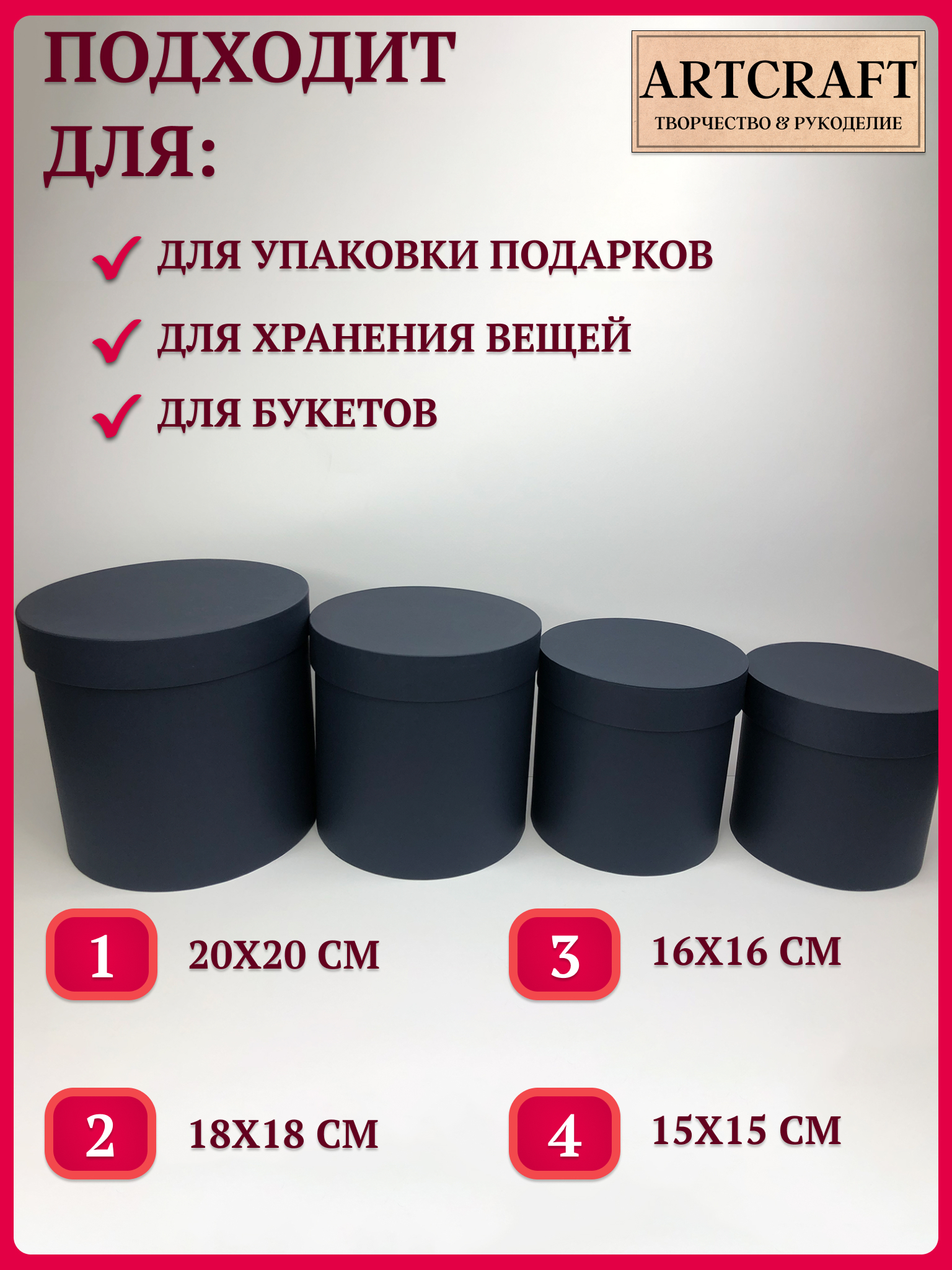Набор коробок подарочных, круглых 4 в 1 - идеальный вариант, чтобы спрятать подарок или несколько подарков. Стильные, яркие и прочные коробочки уместны при упаковке подарка как близкому человеку, так и руководителю. Набор упаковочных коробок - цилиндров
