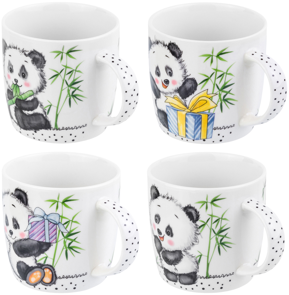 Комплектация:кружка 4 шт.Описание:Набор состоит из 4-х кружек "Панда" объемом по 300 мл. Кружки выполнены из высококачественного фарфора и украшены милыми пандами. Подходят для любых напитков, холодных и горячих: чая, кофе, какао, соков, лимонадов. Благод