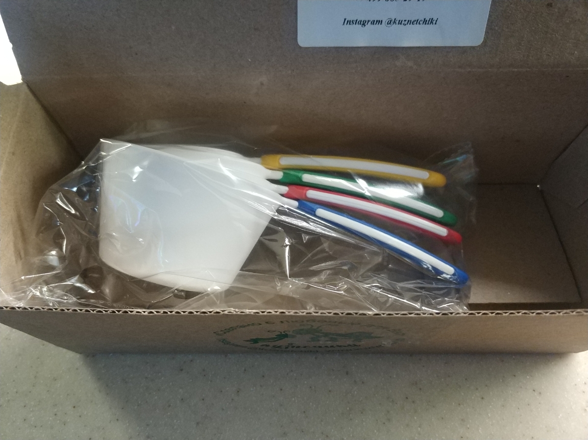 Ложки мерные двухкомпонентные (двухцветные). Их отличает высокое качество и идеальная противоскользящая ручка из Термоэластопласта (ТЭП). Корпус ложки сделан из полипропилена (РР), что обеспечивает высокую долговечность и экологичность изделию.Комплектаци