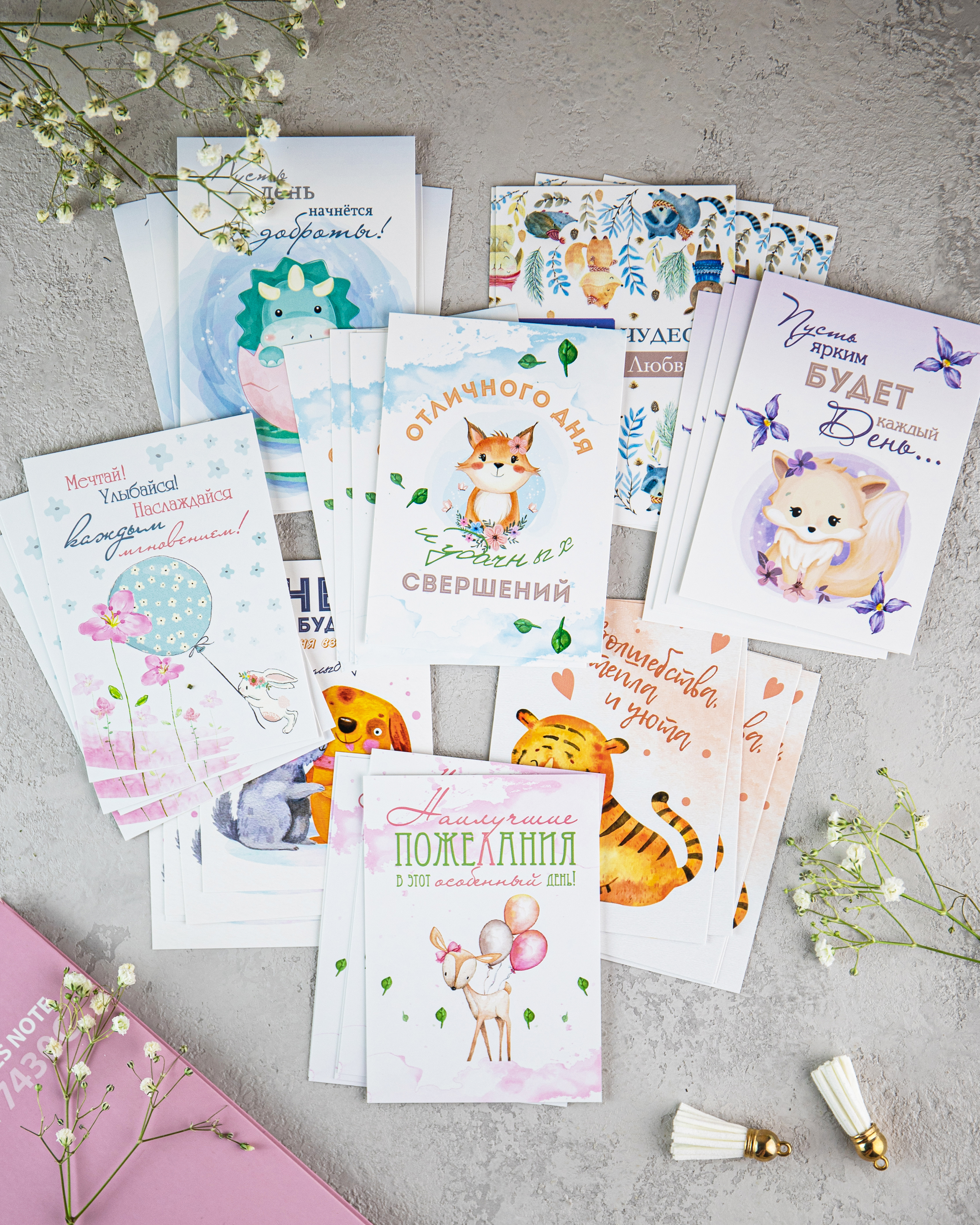 набор мини открыток - 40 шт. РАЗМЕР ОТКРЫТКИ - 10.5см*7,5см. Качественная печать, мелованная бумага высокой плотности 300гр./м2, чистый оборот - можно дописать пожелание на оборотной стороне. Мини открытки идеально подходят для того, чтобы выразить благод