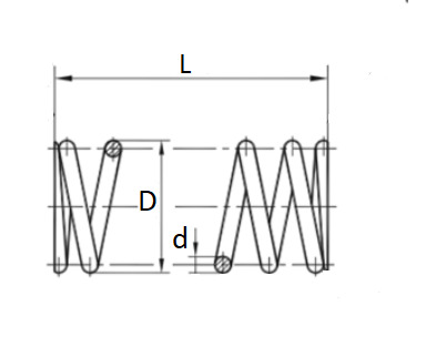 Набор. Пружина сжатия (компрессионная, нажимная). Пружины длиной 25 мм разного диаметра пружины и диаметра проволоки. d – диаметр проволоки в мм;D – диаметр пружины в мм;L – длина пружины в мм.1. d=0,4; D=4,5; L=252. d=0,5; D=4,5; L=253. d=0,5; D=6; L=254
