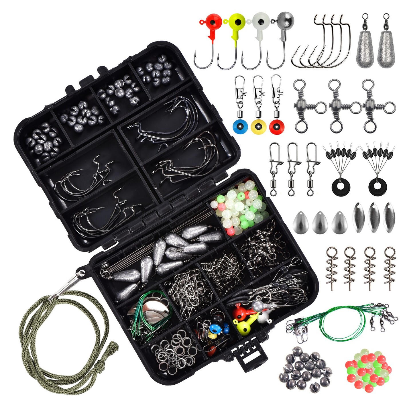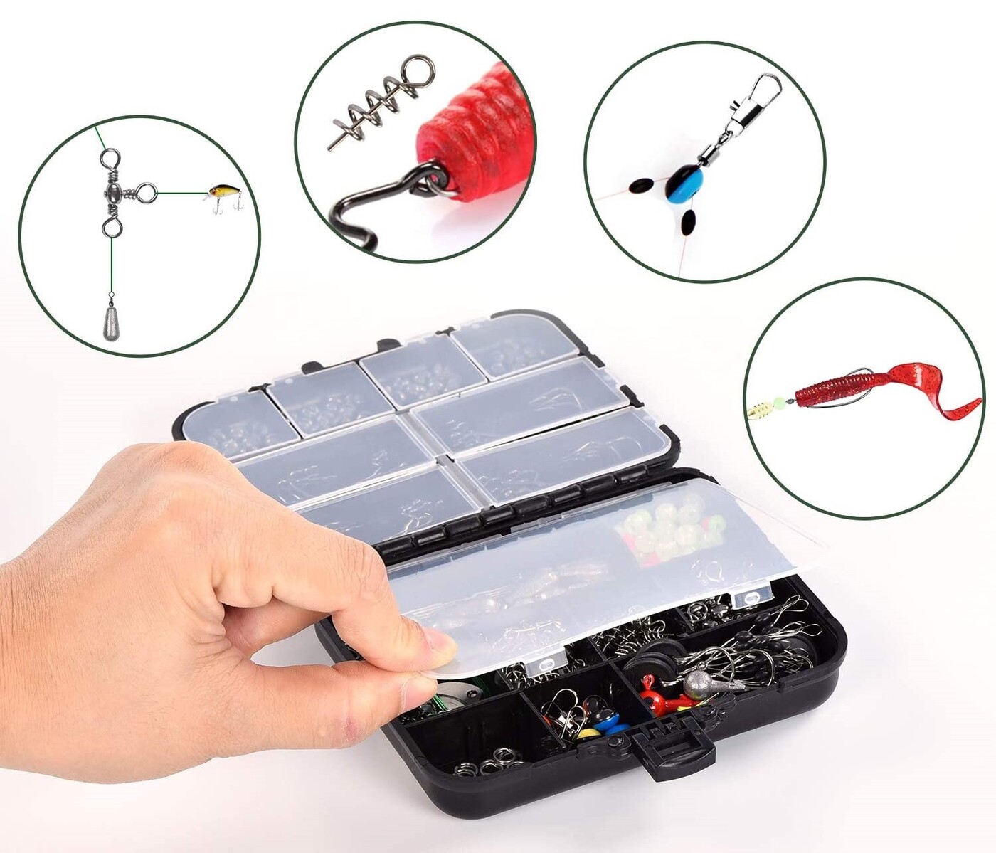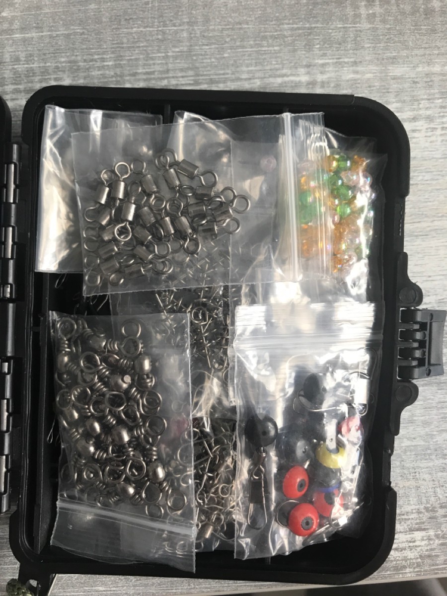 Комплектация:пластиковый кейс - 1 шт.; джиг-головка - 5 шт.; офсетный крючок - 20 шт.; грузило с вертлюгом - 10 шт.; стопор рыболовный - 5 шт.; карабин с вертлюгом - 20 шт.; карабин + вертлюг с бусиной - 10 шт.; заводное кольцо - 30 шт.; вертлюг-цилиндр