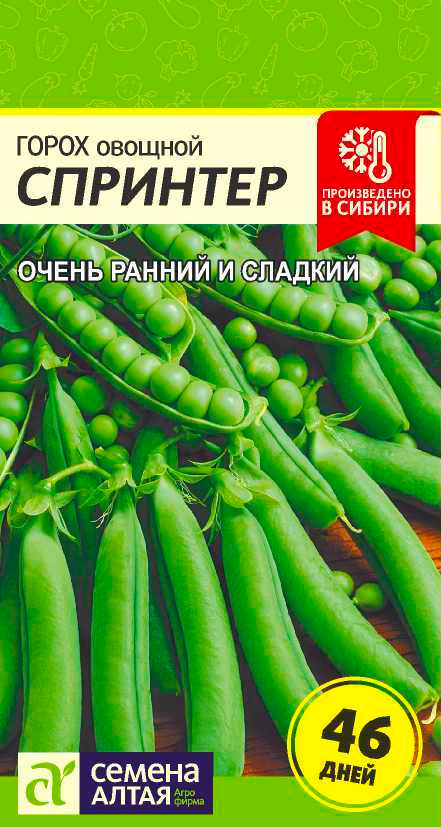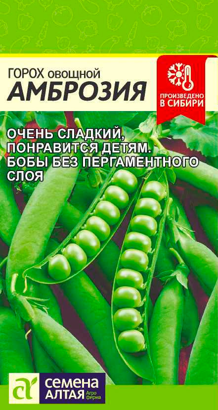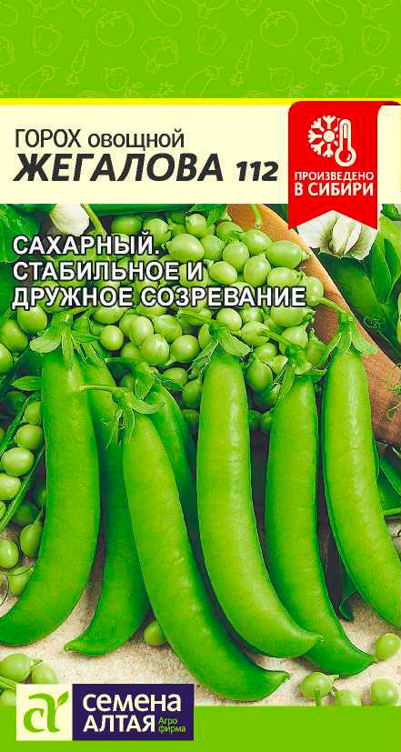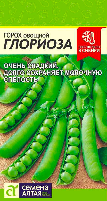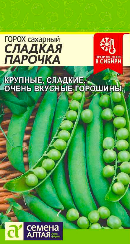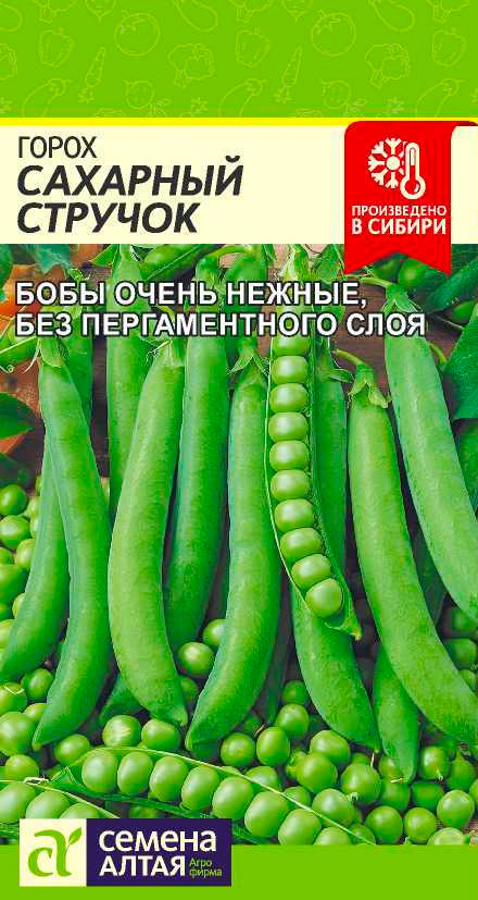 Горох Сахарный стручок 10г (Семена Алтая)Среднеспелый высокоурожайный сахарный сорт. Высота растения 70 см, число соцветий 13-15. Длина боба 10 см, в бобе 7-10 горошин. Зеленые бобы очень нежные, без кожистого пергаментного слоя. В пищу идет целиком зелен