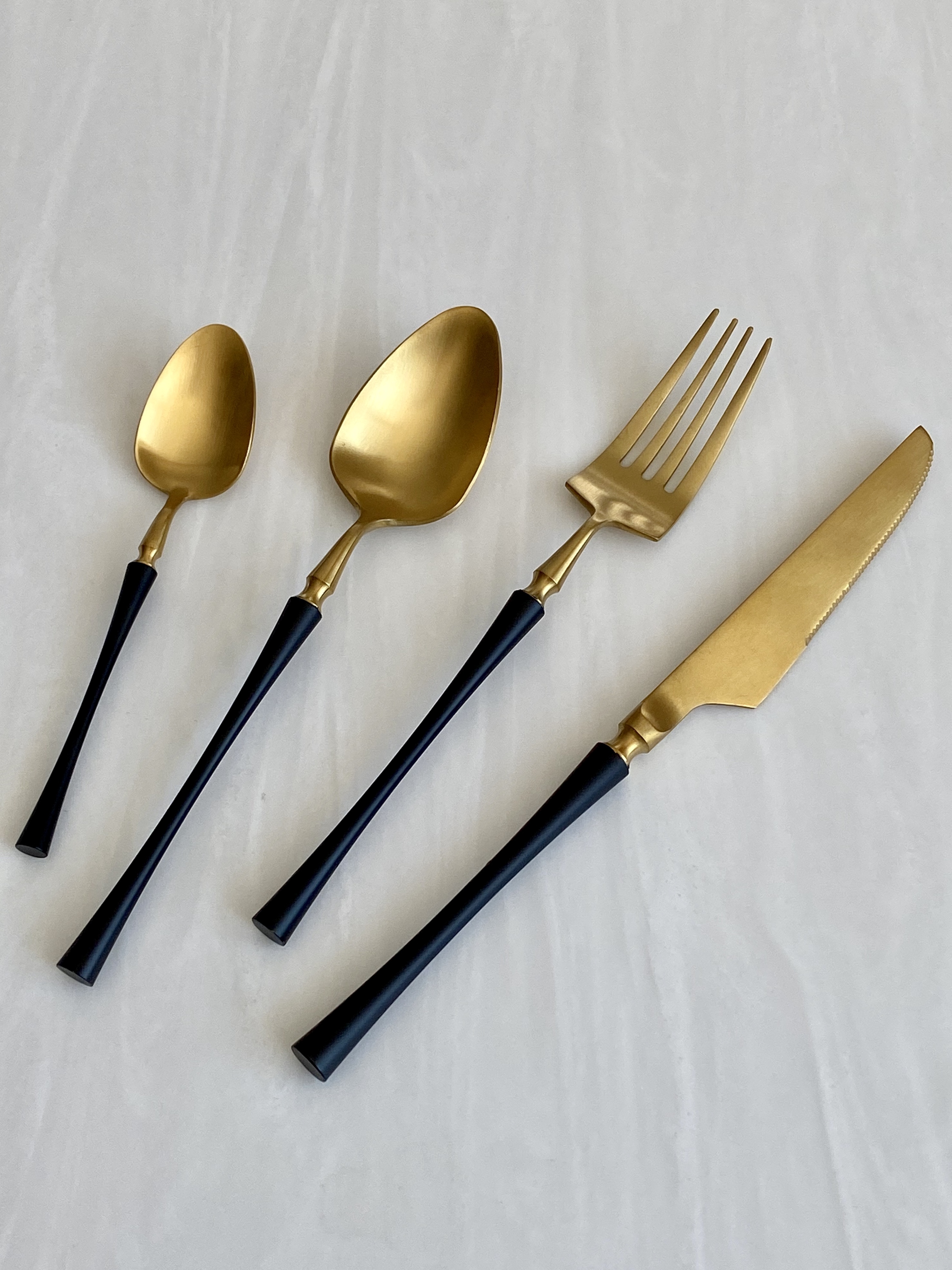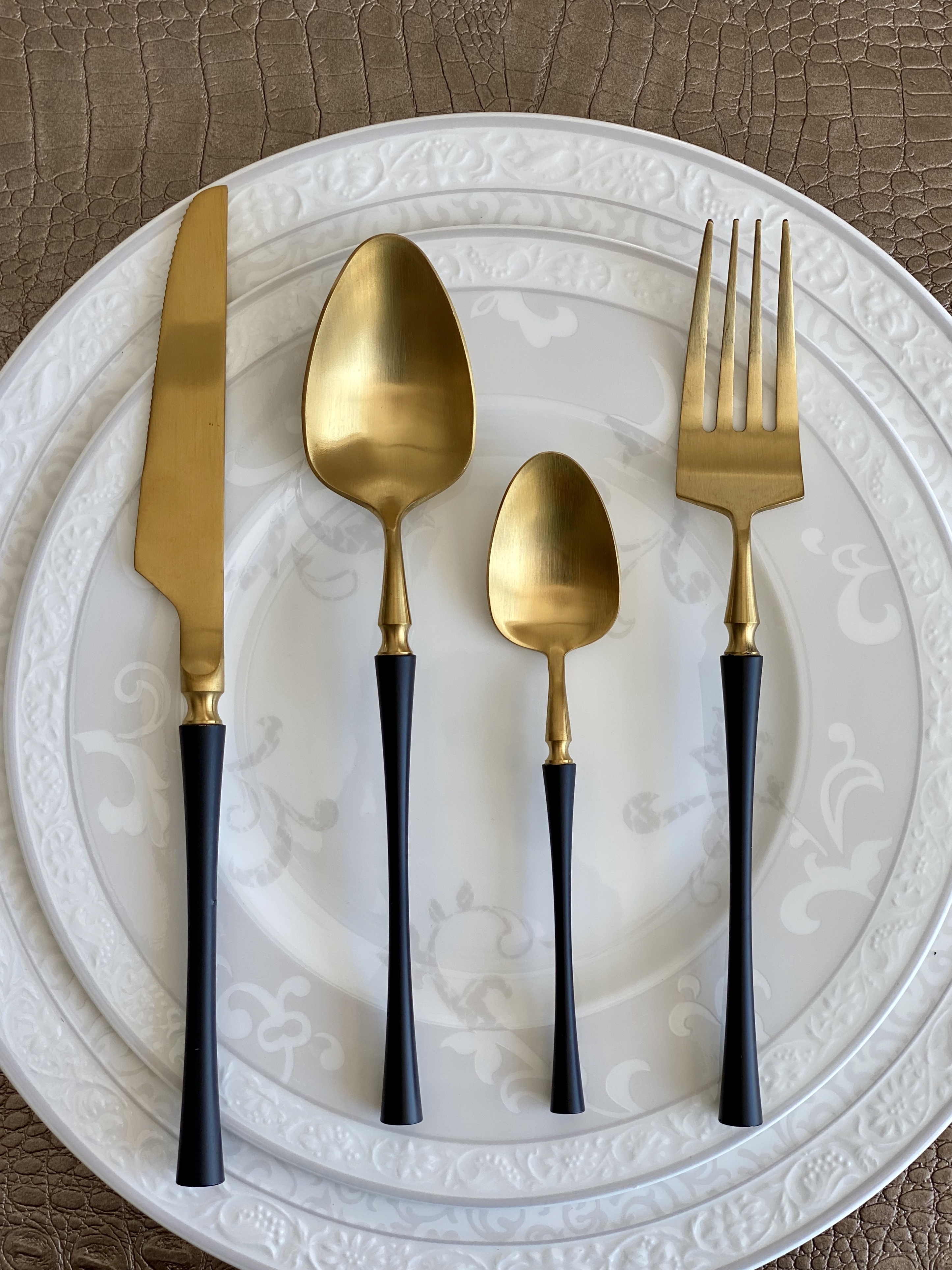 Комплектация:вилка - 1 штука; чайная ложка - 1 штука; ложка - 1 штука; нож - 1 штука, упаковочная коробка - 1 штука. Описание:Дизайнерские столовые приборы от "HOMY MOOD" серии "Аристократ", выполненные в уникальном, эргономичном дизайне - это стиль, крас