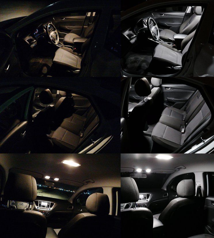 Готовый набор из трех светодиодных ламп для освещения салона автомобилей Hyundai Solaris 2 (2017+), KIA Rio 4 и Икс Лайн (2017+), Киа Сид (2018-2021), Киа Церато кузов BD (2018-2021). Цена указана за весь набор (за 3 лампы).Состав набора: лампа для передн