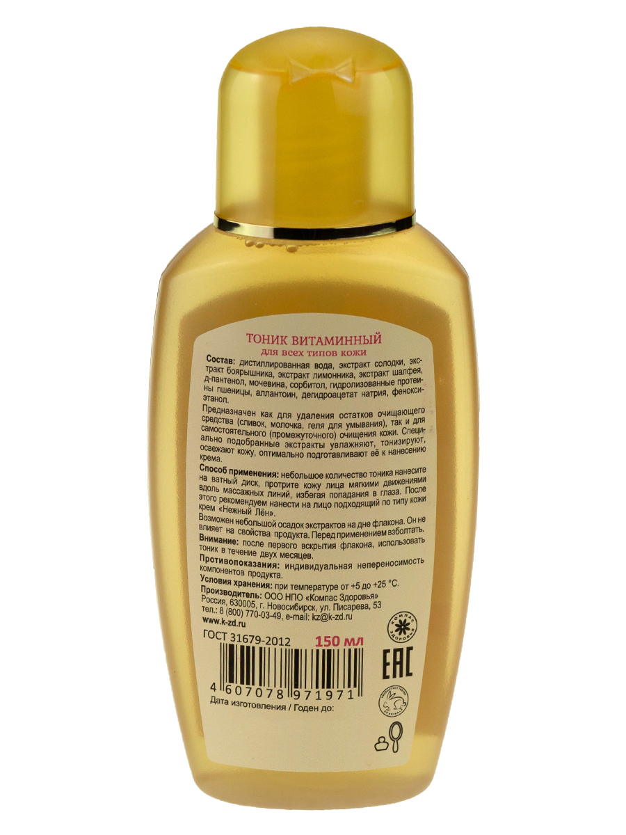 Способ применения:************ Тоник Витаминный для всех типов кожи ************Способ применения: небольшое количество тоника нанесите на ватный диск, протрите кожу лица мягкими движениями вдоль массажных линий, избегая попадания в глаза. После этого рек