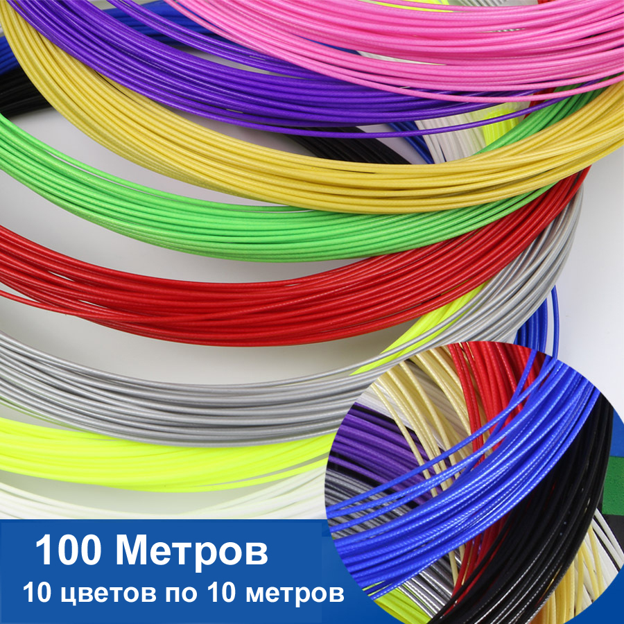 Длина рулона, м:100Описание:Набор ABS пластика отлично подходит для 3Д-ручек! ABS пластик толщиной 1,75 мм в 10 цветах по 10 метров. Данный тип ABS пластика подходит для всех 3D ручек позволяющих рисовать при температуре от 175 градусов. Набор разноцветно