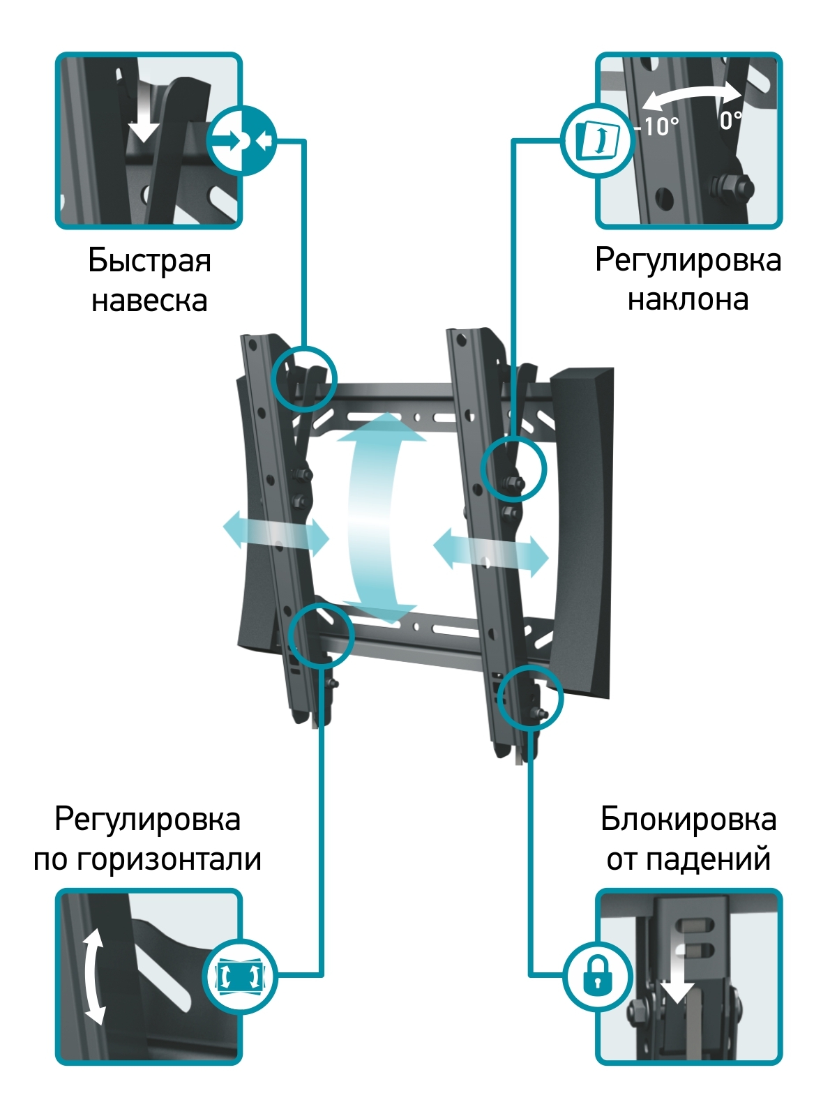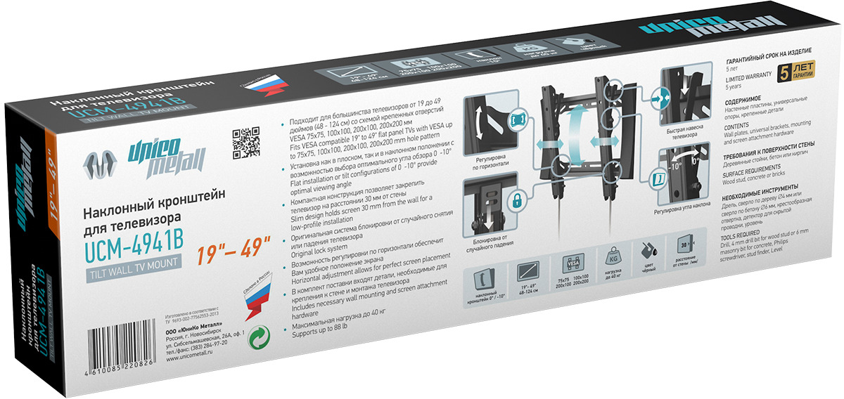 Наклонно-поворотный кронштейн для крепления телевизора на стену UCM-4941B идеально подойдет вам, если есть необходимость смотреть телевизор из любой точки комнаты! Регулировка наклона от -10 до 0 градусов ,минимальное расстояние от стены до телевизора - 3