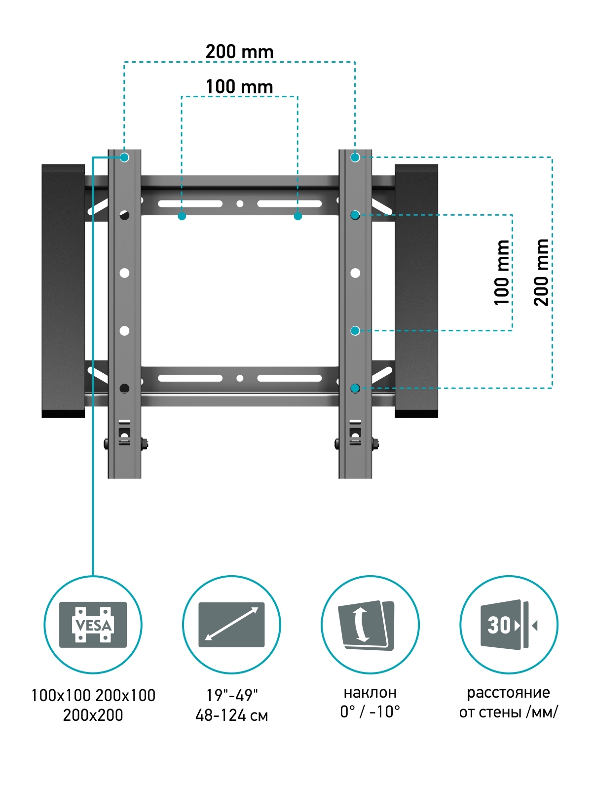 Настенное крепление (VESA)100x100 мм, 75x75 мм, 200x100 мм, 200x200 мм, 100x200 мм, 75x100 мм