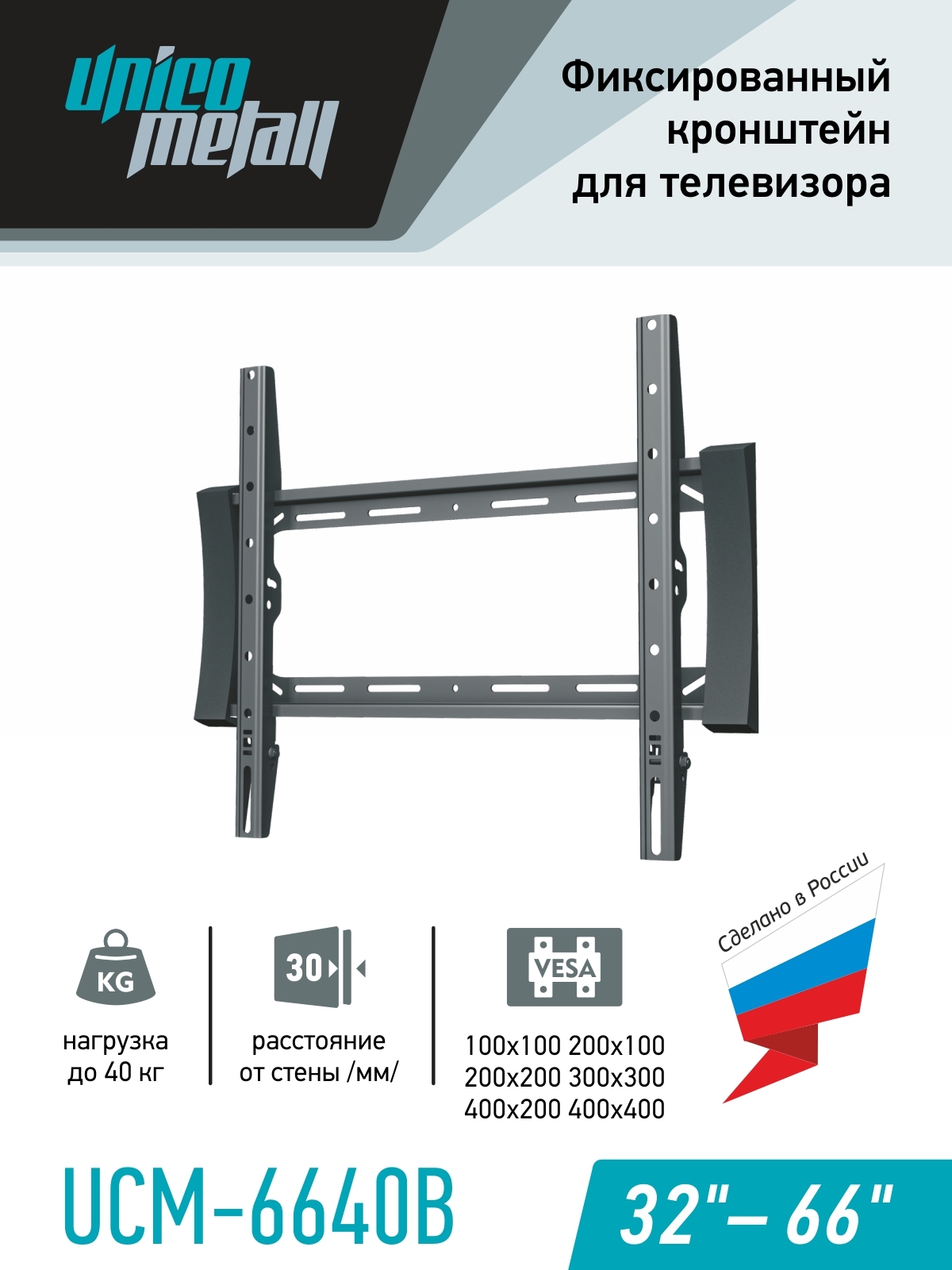 Фиксированный кронштейн для телевизора от ведущего российского производителя Юнико Металл. Этот кронштейн идеально подойдет для тех, кто хочет, чтобы телевизор висел максимально близко к стене. Расстояние от стены до телевизора 23 мм! Подходит для телевиз