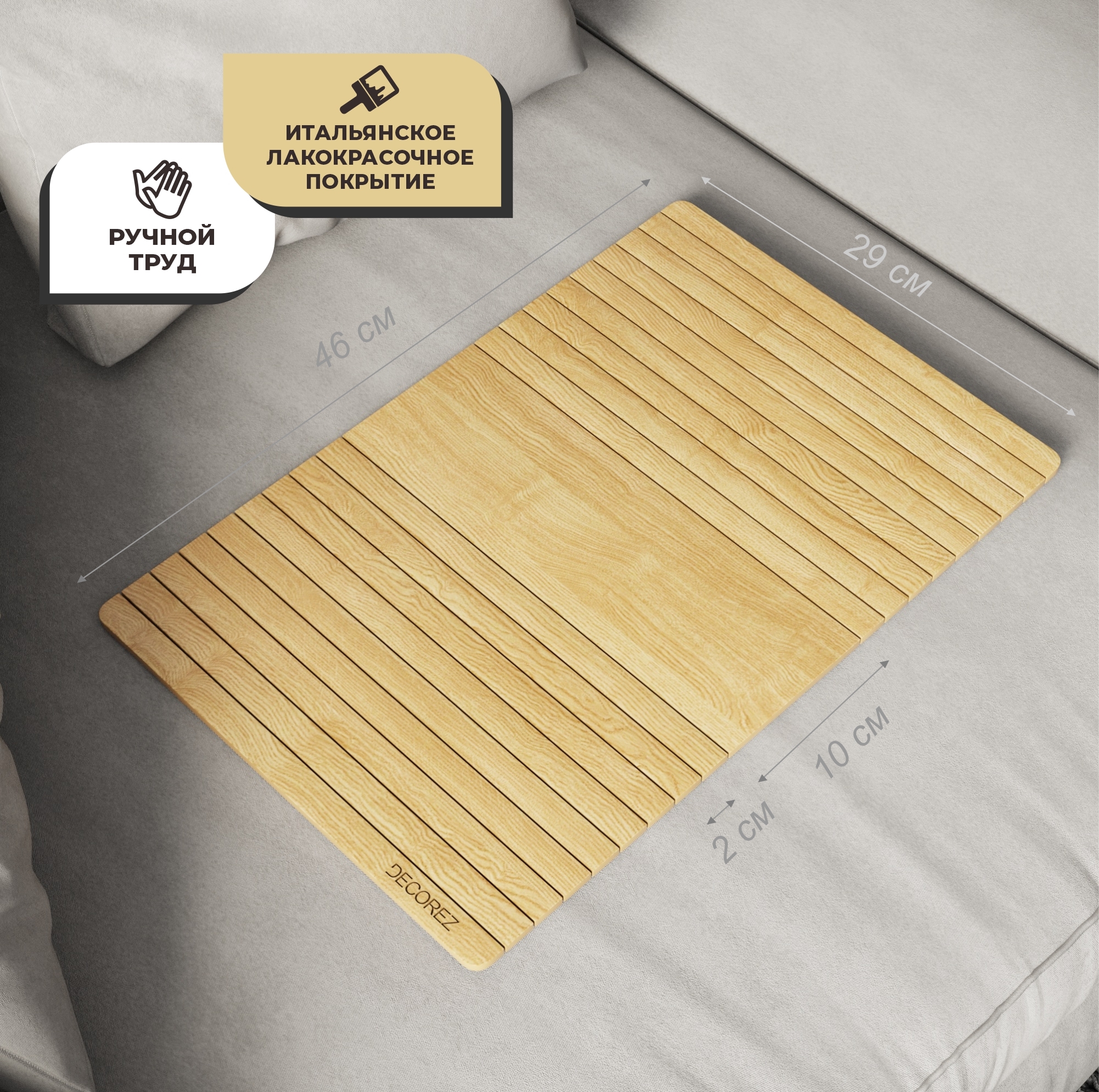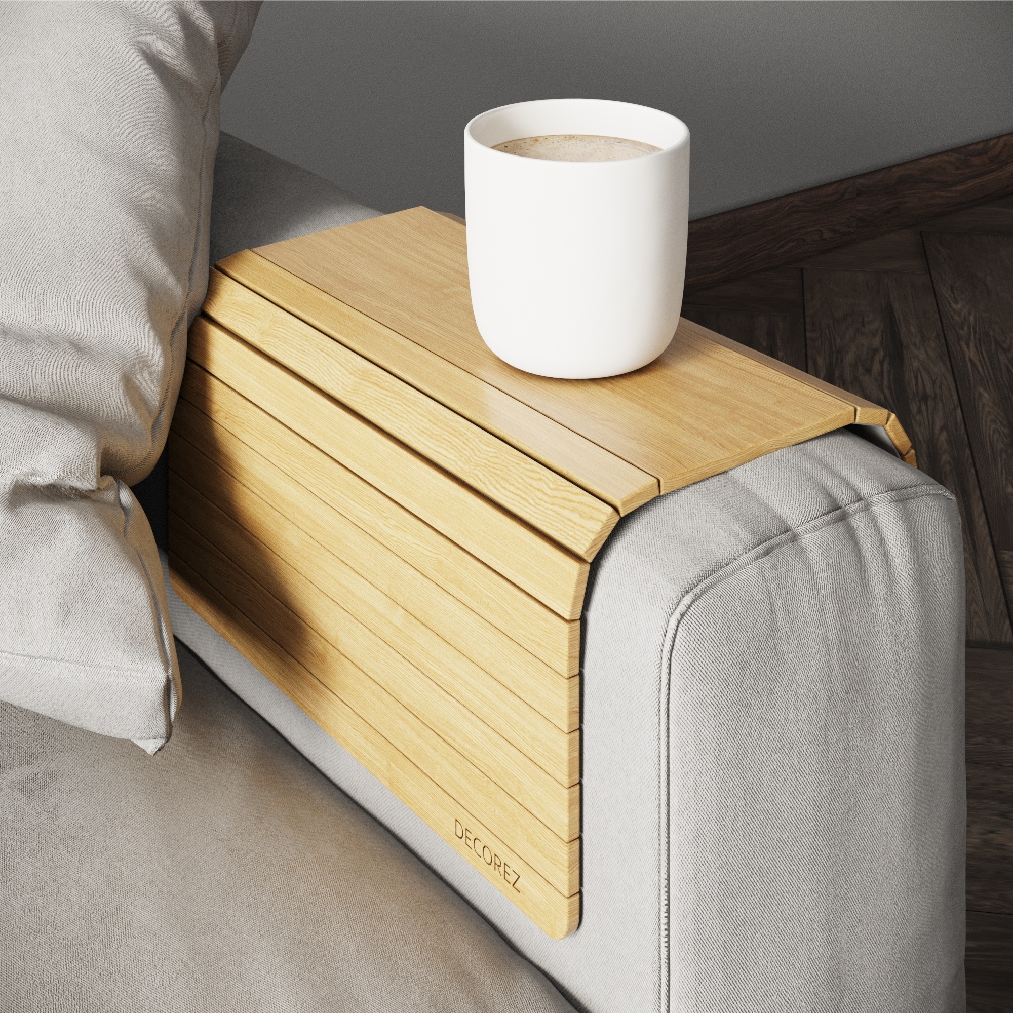 Накладка Decorez предназначена для создания полезного места на подлокотнике дивана. С её помощью можно сделать удобную подставку для ноутбука, планшета, кружки с каким-нибудь напитком. Получается сплошная ровная поверхность. Допустим, можно с удобством ра