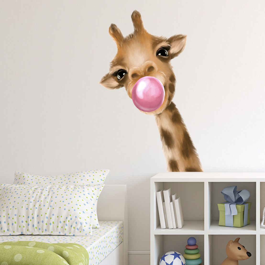 Комплектация:Наклейка на стену - 1шт ; короб-тубус.Описание:Интерьерная наклейка Жираф - стильное украшение для детской.На листе расположен стикер с жирафом, надувающим пузырь.Изображение можно клеить для украшения рабочего, личного пространства, детской