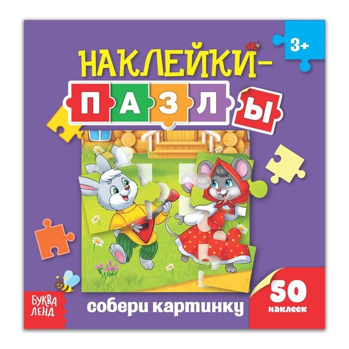 Наклейки-пазлы Буква-ленд Новогодние "Дед Мороз", 12 страниц, 128 наклеек