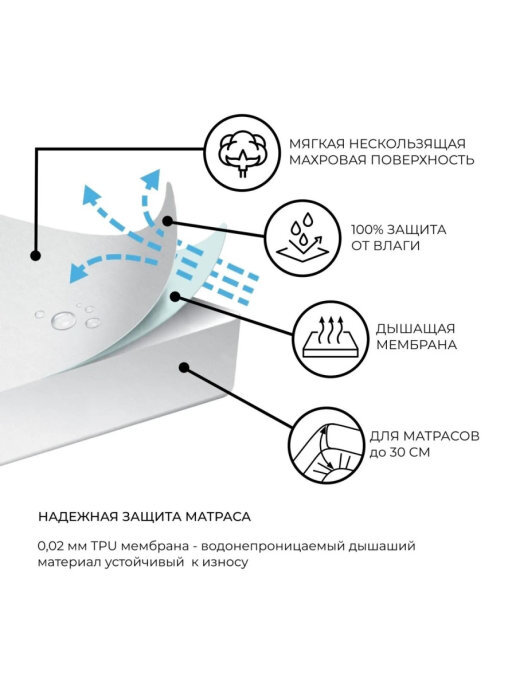 Комплектация:Водонепроницаемый наматрасник 1 шт.Описание:Водонепроницаемый наматрасник изготовлен из ткани мулетон (80 % хлопка и 20 % п/э). Изделие превосходно защищает спальное место от непредвиденных ситуаций, так как в его структуре находится водонепр