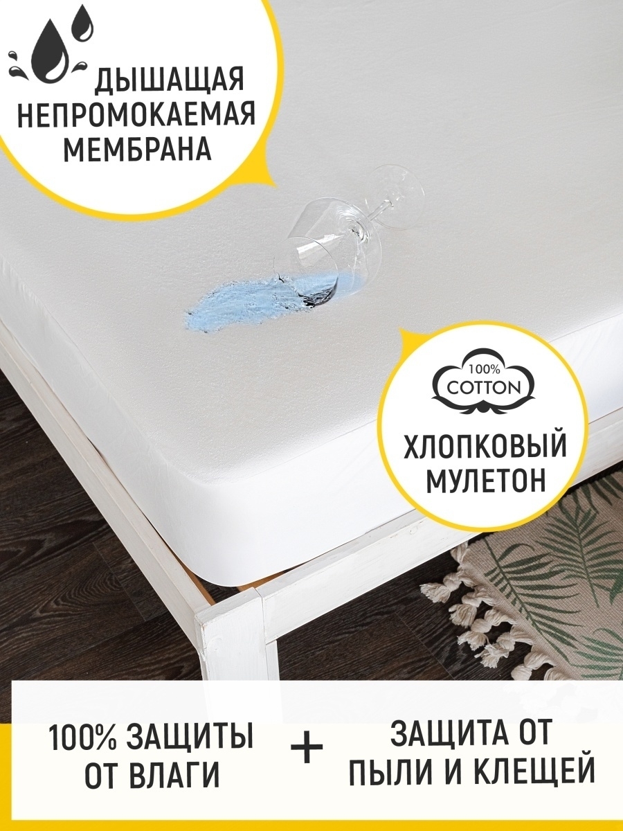 Комплектация:Наматрасник непромокаемый 140 на 200Описание:Наматрасник непромокаемый 140х200 с мембранным покрытием подходит для матрасов размером 140 на 200 и высотой до 30 см. Наматрасник идет на резинке. Наматрасник изготовлен из махрового трикотажного