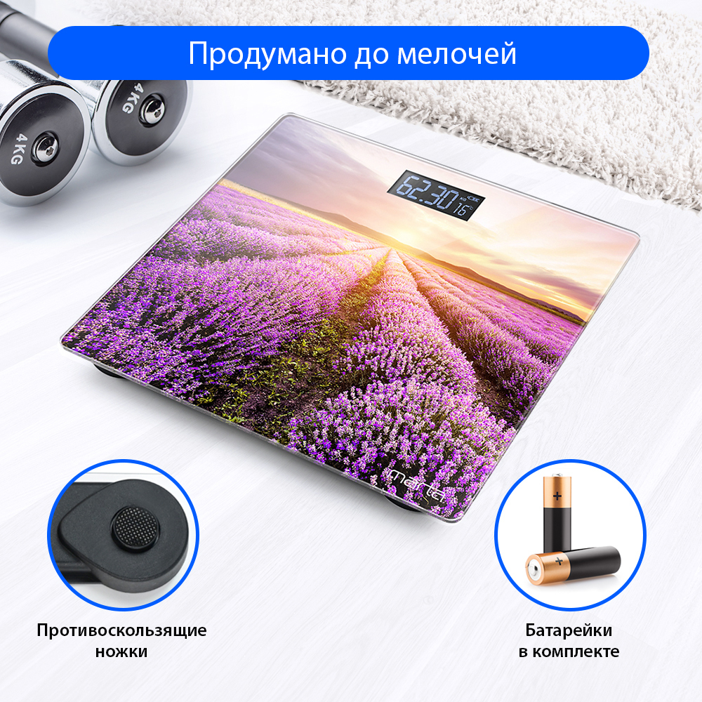Электронные напольные весы с платформой из полированного стекла, встроенной функцией индикации температуры помещения и крупным жидкокристаллическим дисплеем с легко читаемыми цифрами. Обеспечивают взвешивание до 180 килограммов с точностью до 100 граммов.