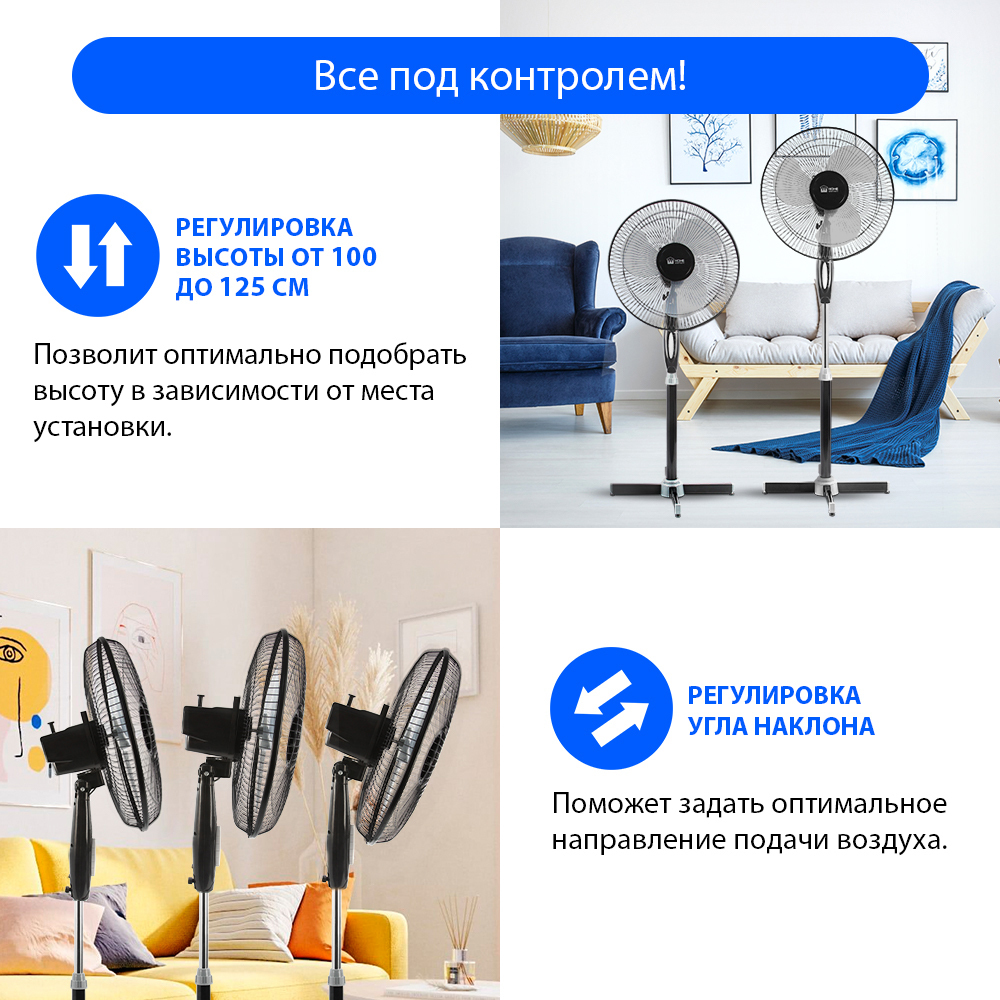 Комплектация:Вентилятор напольный - 1 шт.Описание:• 3-х лопастной напольный вентилятор диаметром 40 см. с устойчивой подставкой, высококачественной защитной решеткой и мотором мощностью 50 Ватт создает мощный поток охлаждающего воздуха.• Низкий уровень шу