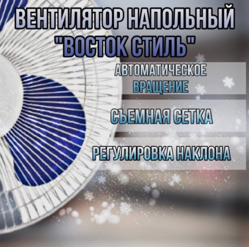 Напольный вентилятор Восток стиль- создаст в комнате комфортные условия в жаркие летние дни. Регулировка высоты и угла наклона винта позволяет установить устройство в любых помещениях. В модели предусмотрен ночник и 3 скорости вращения лопастей, что позво