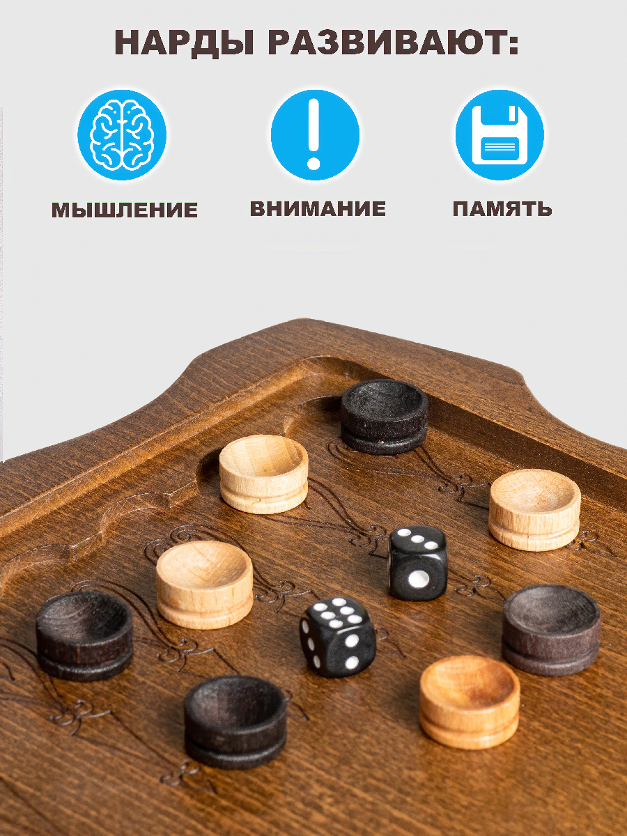✔ Нарды изготовлены из бука и покрыты патиной для придания эффекта благородной старины;✔ Ивановские нарды отличаются своей фигурной основой и резным узором;✔ Идеально гладкое игровое поле для легкого скольжения фишек; ✔ Фишки выполнены из бука и имеют ком