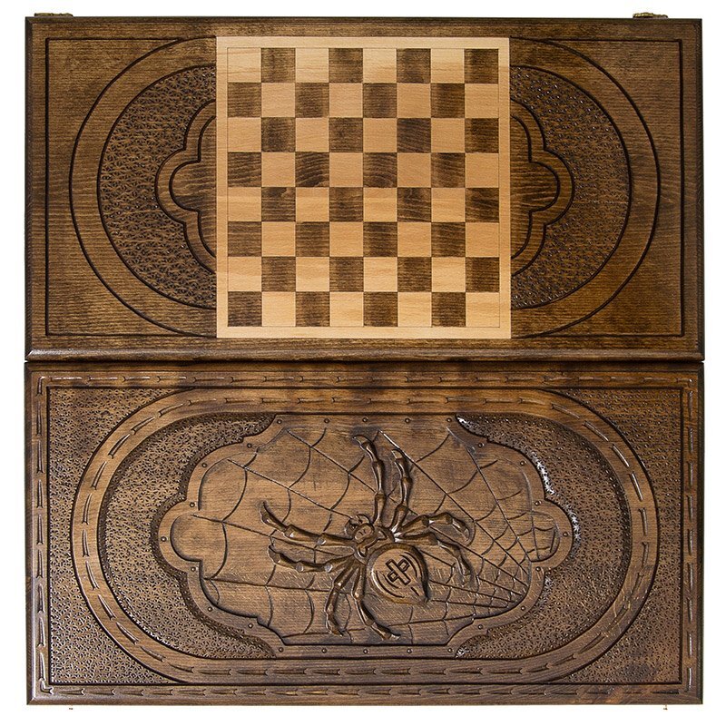Мастер Артур Мирзоян не перестает постоянно радовать поклонников своей продукции новыми изделиями. Здесь вы видите Нарды резные Паук, которые выполнены в соответствии с канонами производителя – отличные материалы, высокое качество изготовления, красивый в