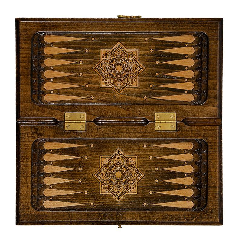 Мастер: Артур МирзоянВремя игры: 15Возраст от: 6Количество игроков (мин.): 2Размер (см): 30Материал: букИсполнение: резныеЧехол: ДаРучка: НетКоличество фишек: 16 светлых, 16 темныхФишки с подложкой : даКости: 2Поле для шашек: естьРазмер (см): 30/30/2.5Раз